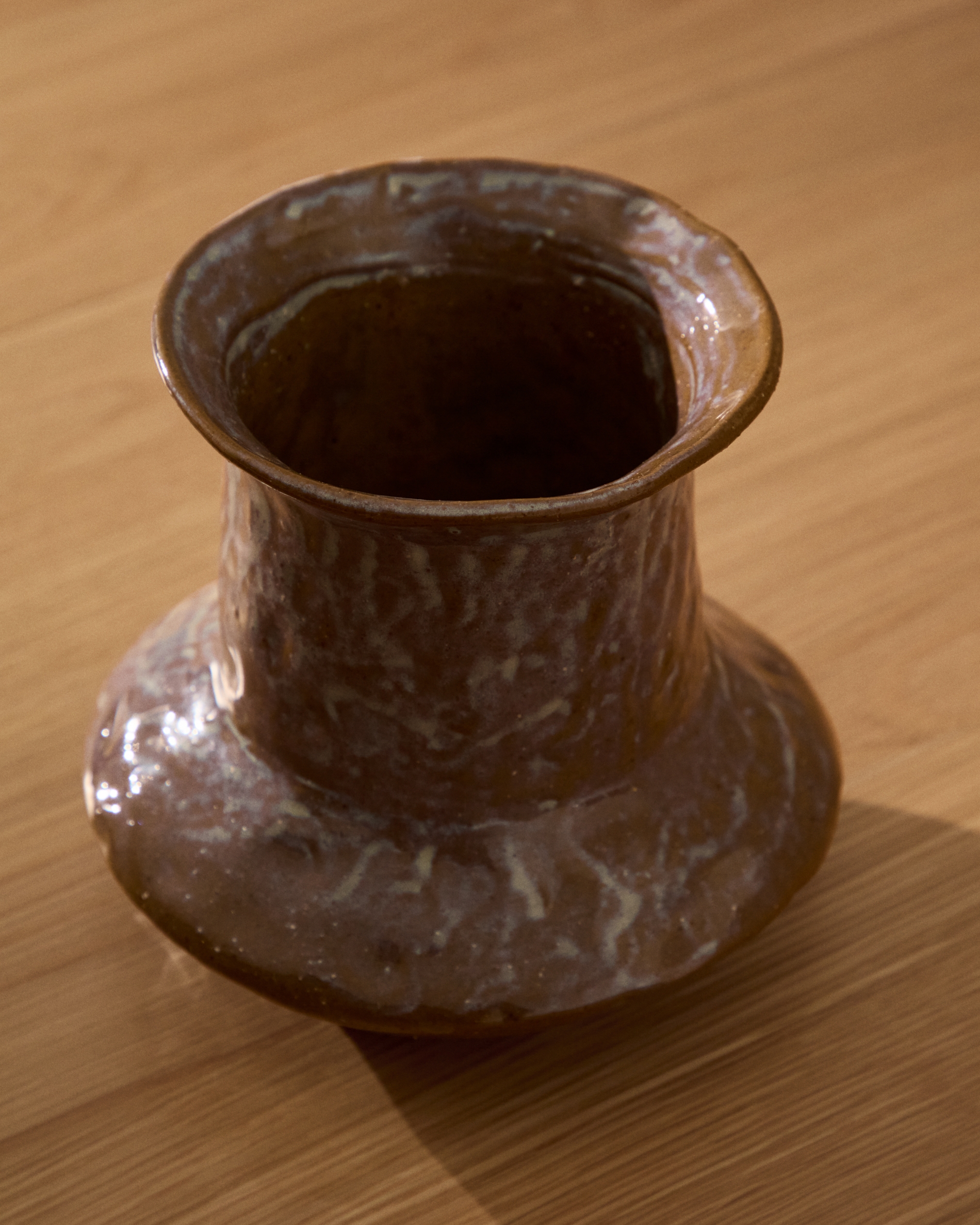 Это керамическая ваза с дизайном, который выделяется своей органической и текстурированной формой. Ее силуэт сочетает в себе широкое изогнутое основание с более узким горлышком, которое открывается к краям, создавая деревенский и элегантный визуальный баланс. Отделка имеет глазурованный эффект, который смешивает теплые тона. Идеально подходит для добавления уникального и аутентичного штриха в любое пространство, эта ваза прославляет красоту несовершенства.