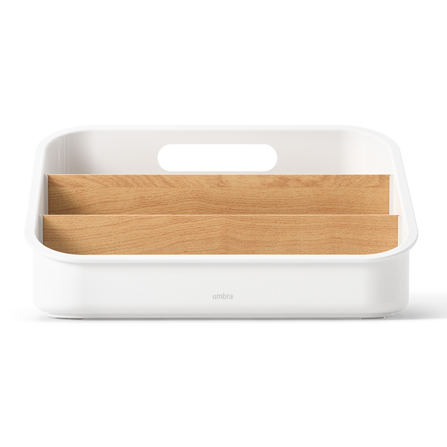 Материалы: переработанный АБС-пластик, тополь, бук, силикон. Размеры: 26х20х13 см. Цвет: белый/натуральное дерево.