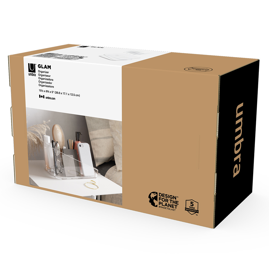 В органайзере Glam можно хранить все необходимое для повседневного макияжа благодаря отделениям разного размера и съемной вставке. Легкий, компактный и удобный в использовании, он обеспечивает быстрый доступ к необходимым средствам, не занимает много места в ванной и на туалетном столике.