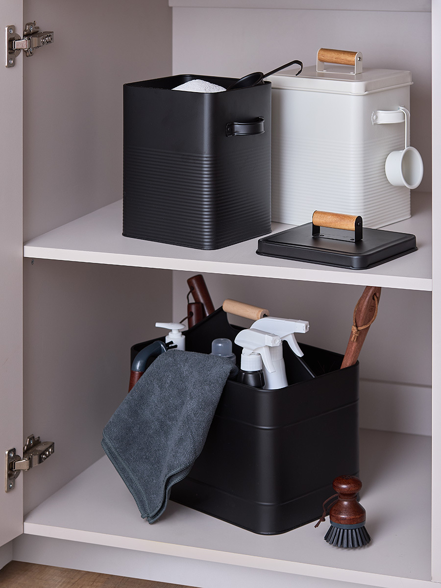 - Органайзер имеет 4 отделения для удобного хранения различных моющих средств.