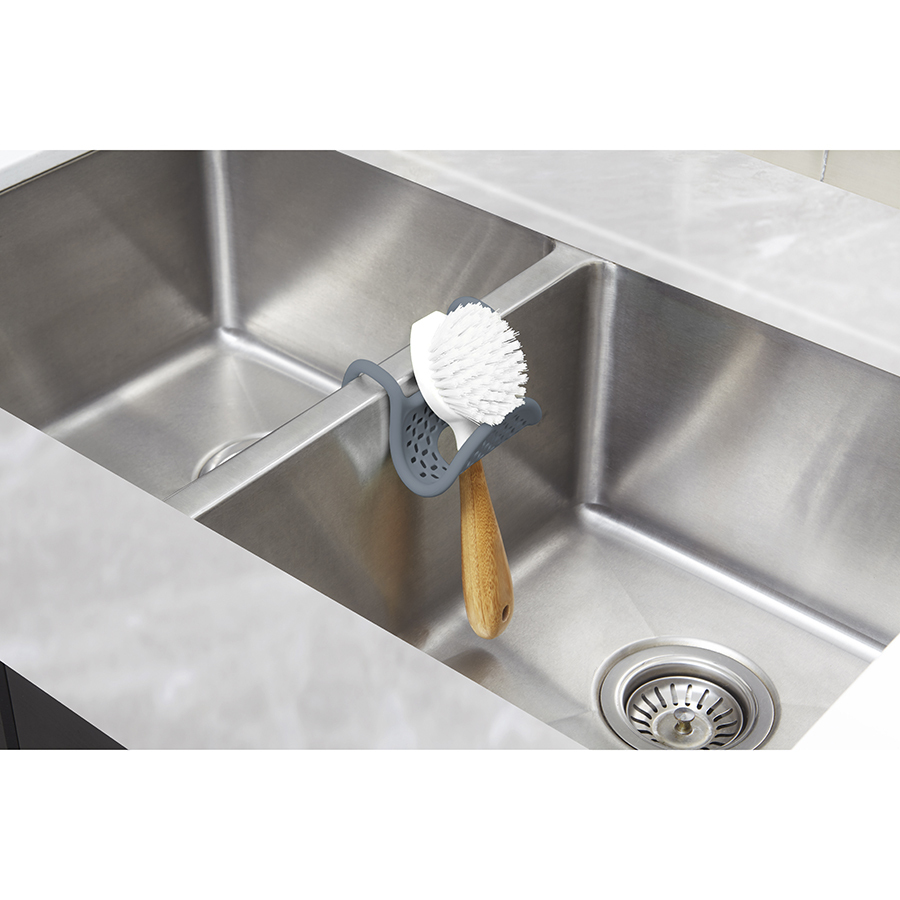 Caddy – уникальный органайзер для раковины из металлической проволоки с гибким, антискользящим покрытием, который подходит для хранения губок, щеток и других приспособлений для чистки и мытья посуды. Его ручка удобно гнется, обеспечивая удобное размещение на смесителе или боковой стороне раковины. Органайзер имеет перфорфорированное основание, что предотвращает накопление влаги и позволяет вашим щеткам и губкам быстрее сохнуть.