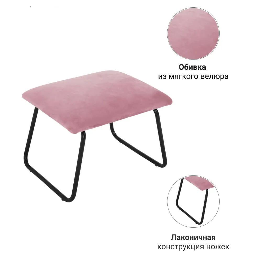Оттоманка — обязательный атрибут всех современных дизайнерских интерьеров. Это довольно функциональный предмет, который пригодится как в качестве небольшого удобного табурета, так и в качестве подставки для ног. Снять напряжение после сложного рабочего дня можно с помощью оттоманки, которая станет настоящим спутником вашего комфорта. Оттоманку Alex можно приобрести отдельно, а также в комплекте с креслом Alex, выполненном в той же цветовой гамме нежной пудры. Ножки изготовлены из прочного металла с уплотнителями, которые добавляют устойчивости и защищают пол от потертостей и износа. Обивка — нежный и мягкий велюр, который всегда смотрится органично, подчеркивая стильный дизайн помещения.