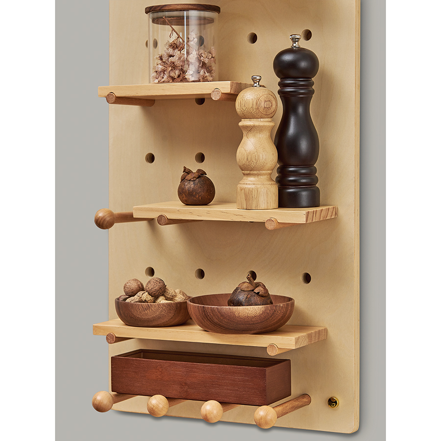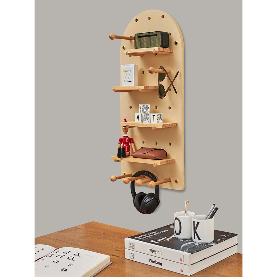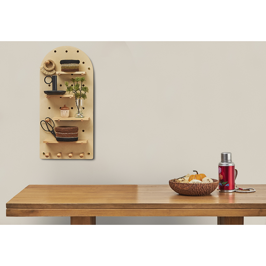 Пегборд Shely – многофункциональный предмет интерьера, который позволит удобно разместить различные аксессуары: наушники, декор, книги, игрушки, рамки с фотографиями, часы, цветочные горшки, сумки и многое другое. Конструкция предусматривает наличие горизонтальных полок и специальных держателей. Благодаря минималистичному дизайну и нейтральному цветовому решению модель прекрасно вписывается в любое оформление комнаты. Настенный монтаж обеспечивает компактное размещение. Практичные материалы гарантируют изделию износостойкость и долгий срок службы.