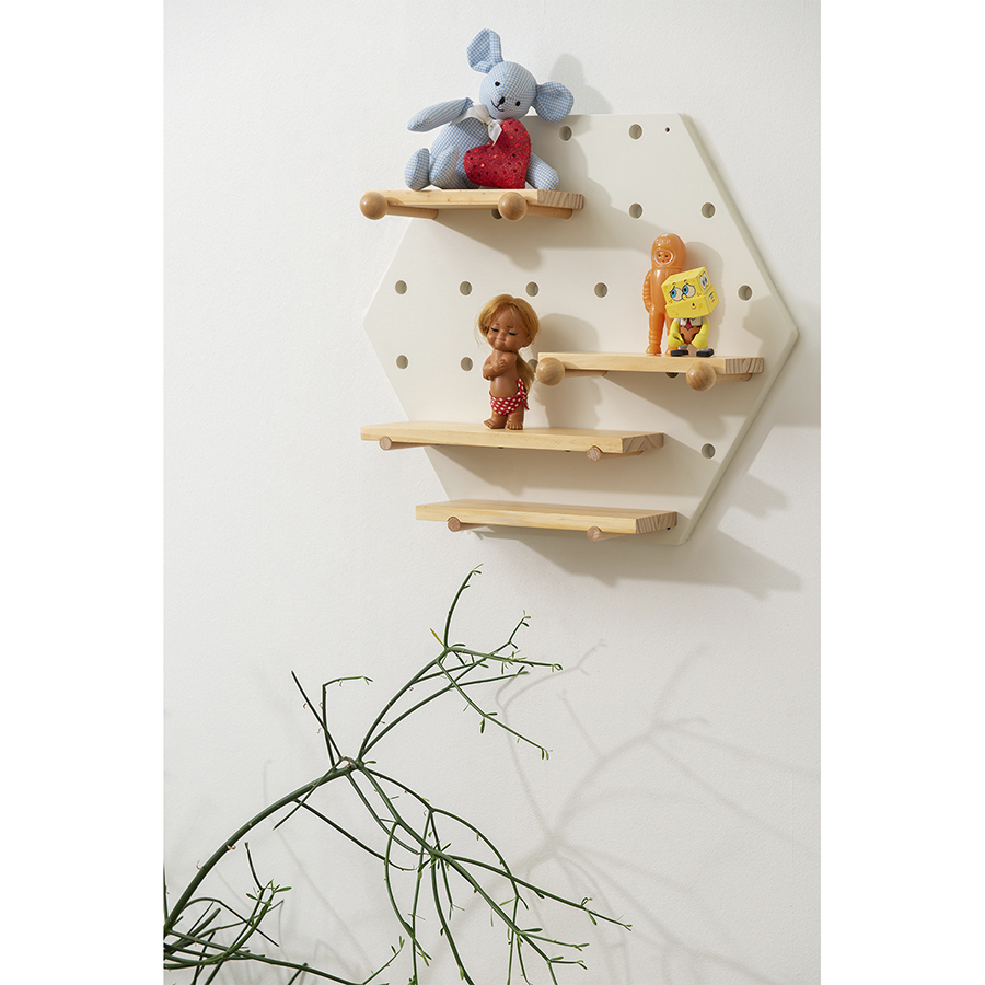 Пегборд Shely – многофункциональный предмет интерьера, который позволит удобно разместить различные аксессуары: наушники, декор, книги, игрушки, рамки с фотографиями, часы, цветочные горшки, сумки и многое другое. Конструкция предусматривает наличие горизонтальных полок и специальных держателей. Благодаря минималистичному дизайну и нейтральному цветовому решению модель прекрасно вписывается в любое оформление комнаты. Настенный монтаж обеспечивает компактное размещение. Практичные материалы гарантируют изделию износостойкость и долгий срок службы.