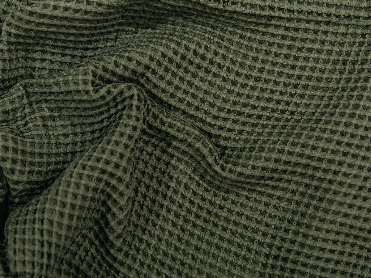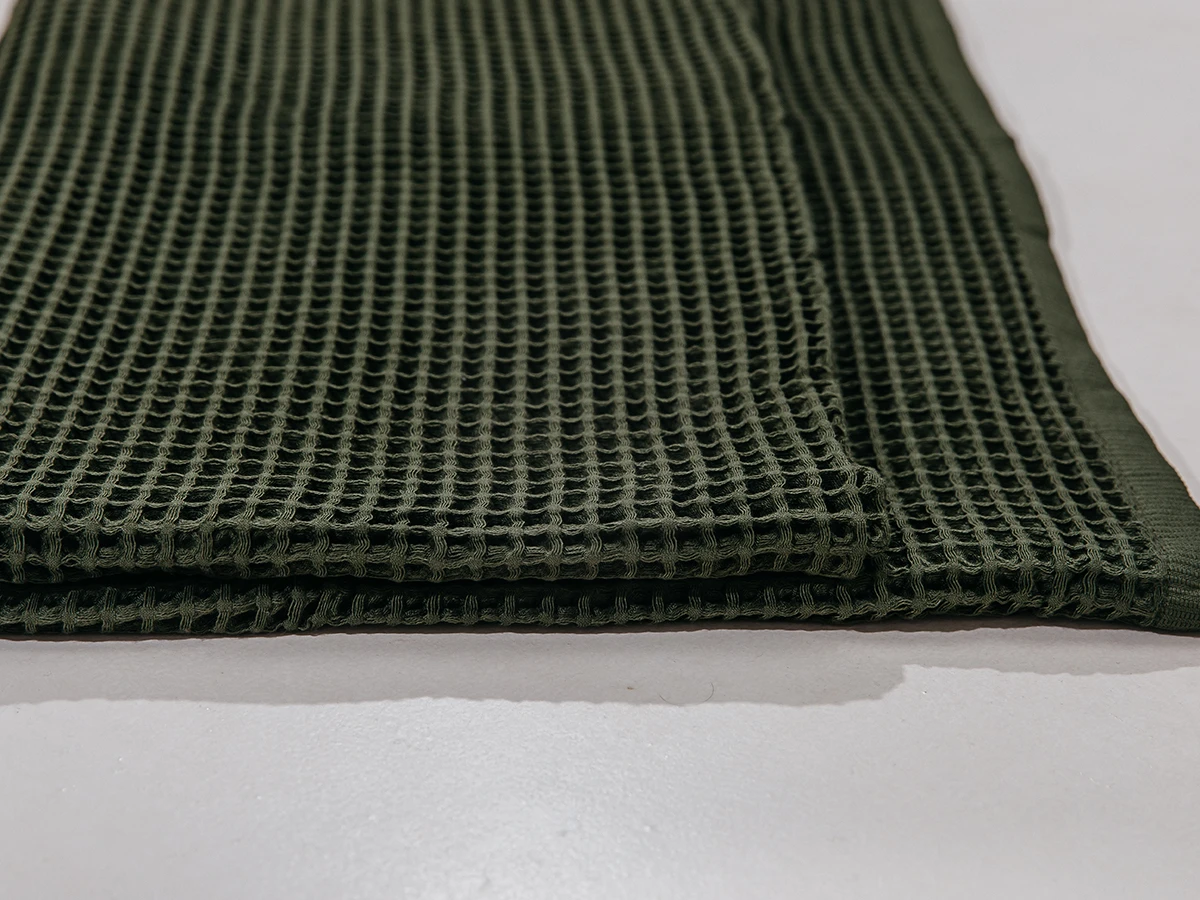 Благодаря натуральному составу – хлопок 100%, изделие гипоаллергенно, подходит для чувствительной кожи, приятно на ощупь, сохраняет тепло, также натуральный хлопок придает пледу прочность, сохраняя форму изделия! Тип ткани - вафельное полотно, плотностью 430 г/м2.