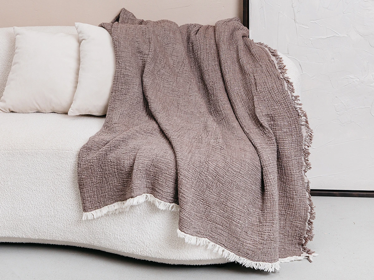 Наш плед покрывало изготавливается из высококачественной пряжи, поэтому на нем не образуются катышки, он устойчив к выцветанию, не колется и не теряет свой внешний вид даже после многократных стирок. Тип сырья – натуральное растительное. Состав волокон - 100% хлопок (муслин). Количество базовых слоев - 4. Нашим хлопковым пледам подходит машинная стирка на деликатном режиме при температуре воды не выше +30 градусов С и отжим на низких оборотах не более 600! Стирка с кондиционером сделает его мягче, а сушка в разложенном виде поможет избежать растягивания. Изделие отлично впитывает влагу и отлично пропускает воздух, одеяло будет служить и согревать Вас вечерами долгие годы!