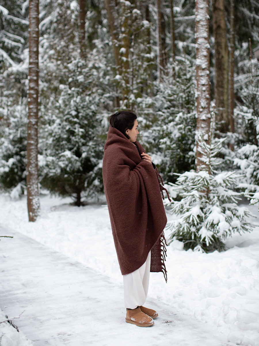 Материалы: 80% шерсть, 20% мохер. Размеры: 130х180 см. Цвет: шоколадный.