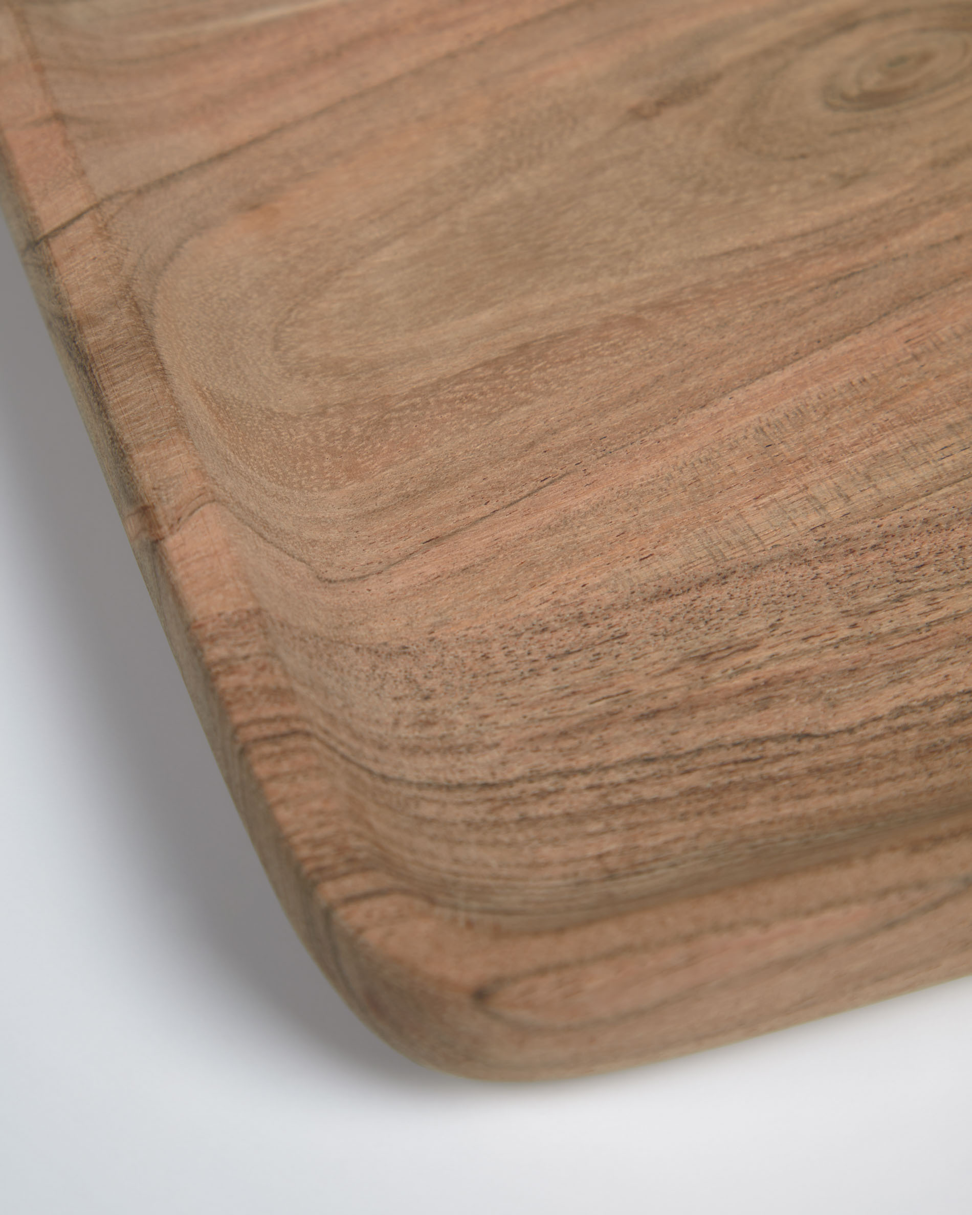 Поднос полностью сделан из массива акации в натуральной отделке. Он имеет квадратную форму с загнутыми вверх краями.