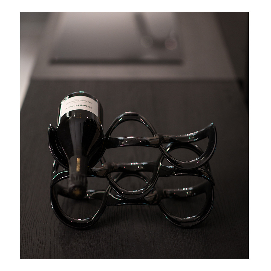 Стильная подставка для бутылок Cuvee станет оригинальным украшением гостиной, кухни или кабинета. Хранение вина в горизонтальном положении – это наиболее правильное решение, поскольку напиток соприкасается с пробкой и не дает ей высохнуть. Подставка выполнена в элегантном дизайне и рассчитана на хранение пяти бутылок. Несмотря на вместительность, она компактна и займет мало места на столе, комоде или полке. Аксессуар изготовлен из высококачественного полимерного материала SMMA. Благодаря этому конструкция отличается прочностью и стойкостью к большим нагрузкам.
