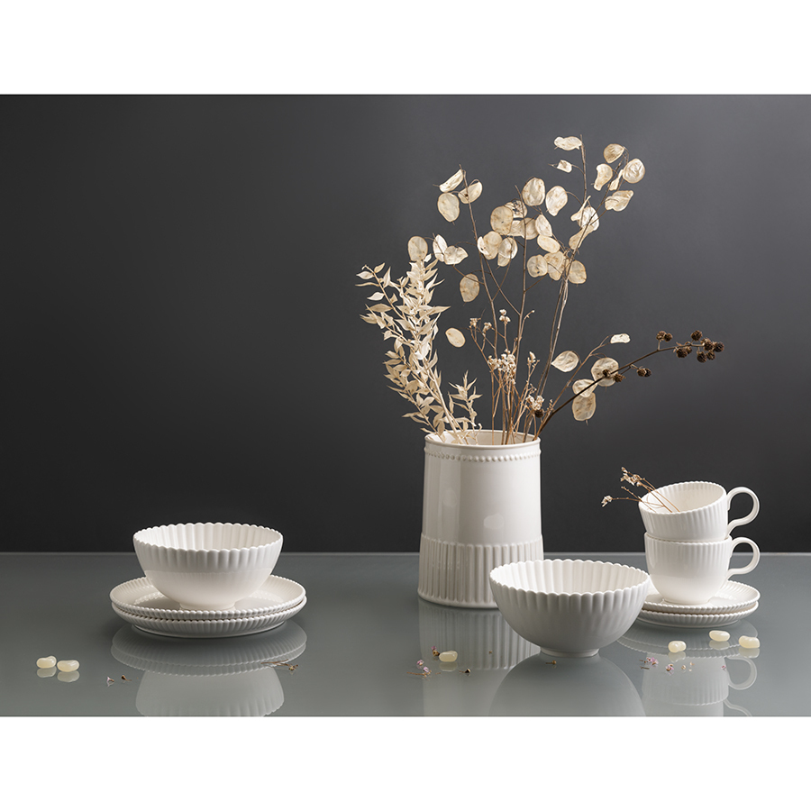 Отличительной особенностью линейки является покрытие из реактивной глазури, которое создает на поверхности посуды уникальные узоры. Во время обжига фарфора возникает химическая реакция, обычно плавление или окисление, в результате которой и получается нужный рисунок. Благодаря такой обработке найти два идентичных изделия практически невозможно. Именно за счет своей индивидуальности и неповторимости узора столовая посуда и аксессуары для сервировки с реактивной глазурью стали трендом в мире дизайна и декора.