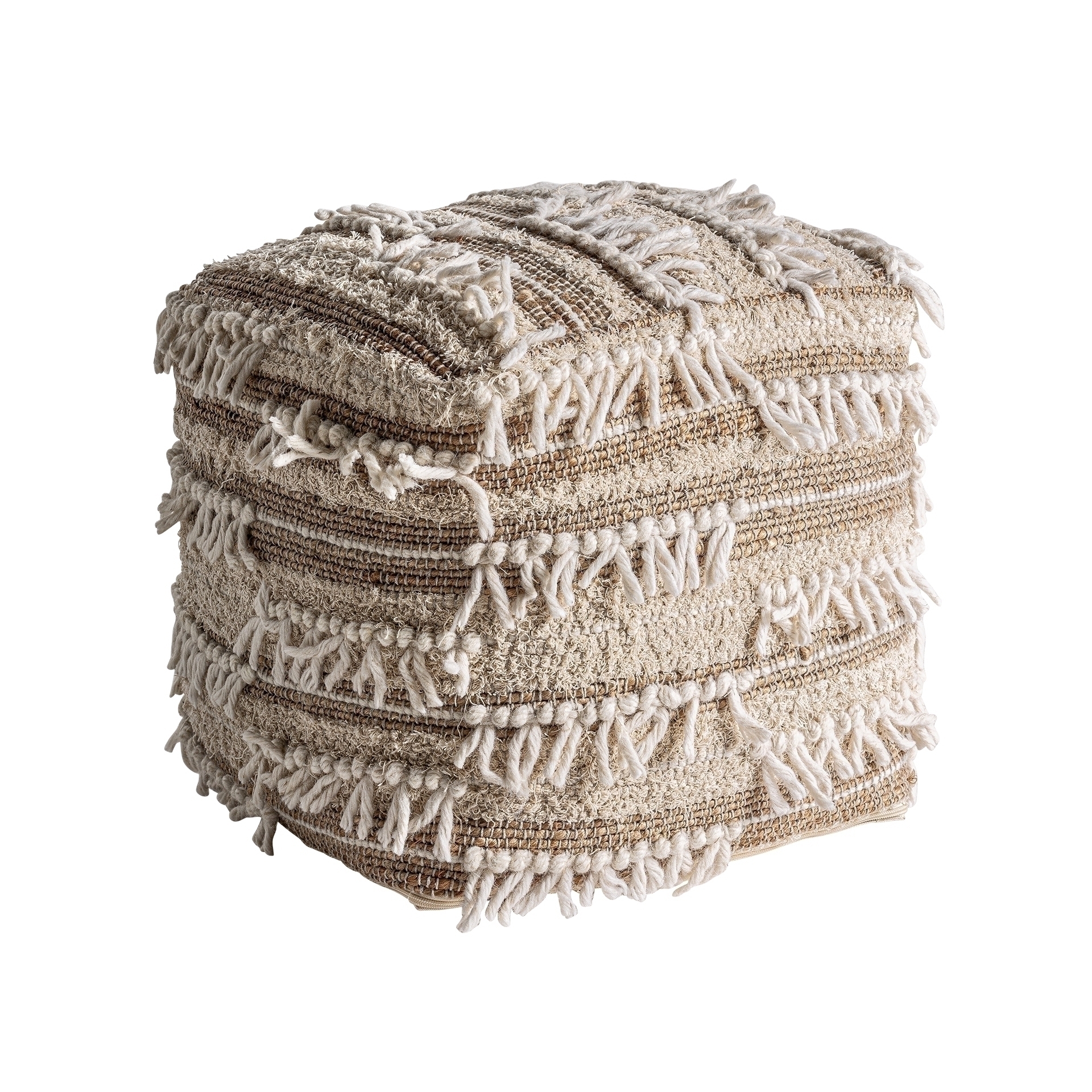 Подставка для ног Zuri, коричневые тона, стиль бохо. Изготовлен из джута в сочетании с хлопком и шерстью. Съемное изделие.