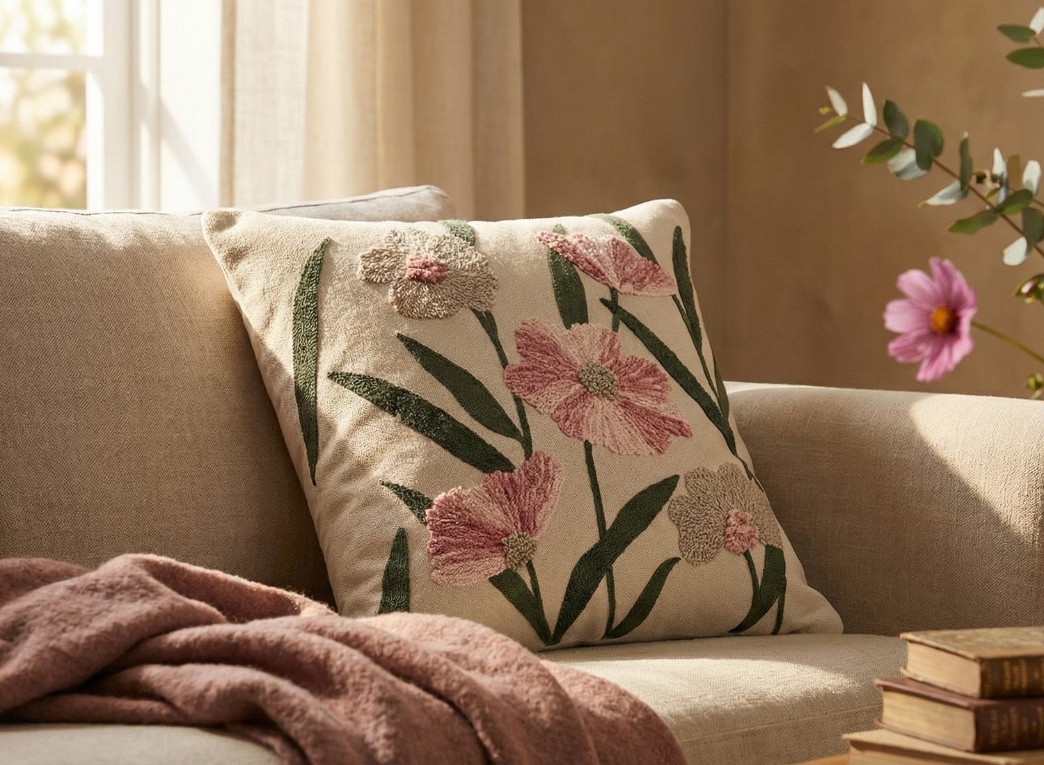 - Вышитый узор добавляет в дизайн элемент ручной работы, а также делает декор более привлекательным и износостойким.