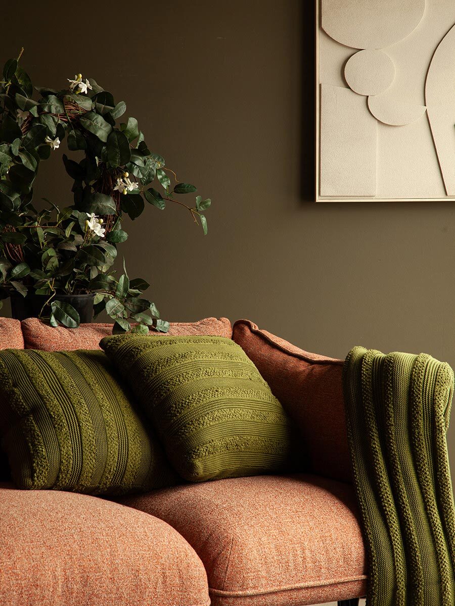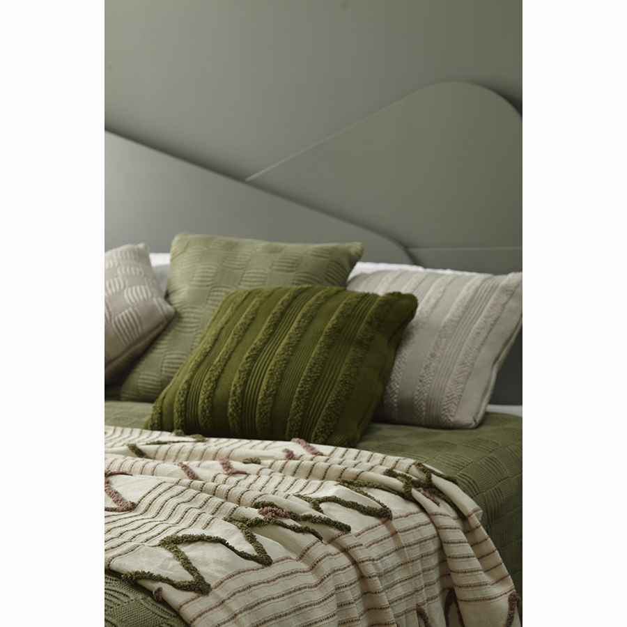 Подушка из хлопка с буклированной вязкой оливкового цвета из коллекции Essential – стильный и практичный домашний текстиль, который создан, чтобы дарить комфорт и наполнять любое пространство уютом. За счет интересной объемной фактуры изделие станет заметным акцентом в интерьере спальни или гостиной. Чехол из натурального материала устойчив к образованию катышков, не вызывает аллергических реакций, не электризуется, обеспечивает тактильный комфорт. В качестве наполнителя используется 100% полиэстер.