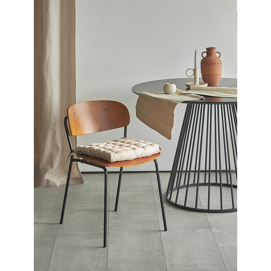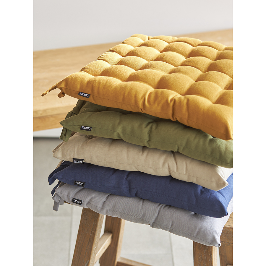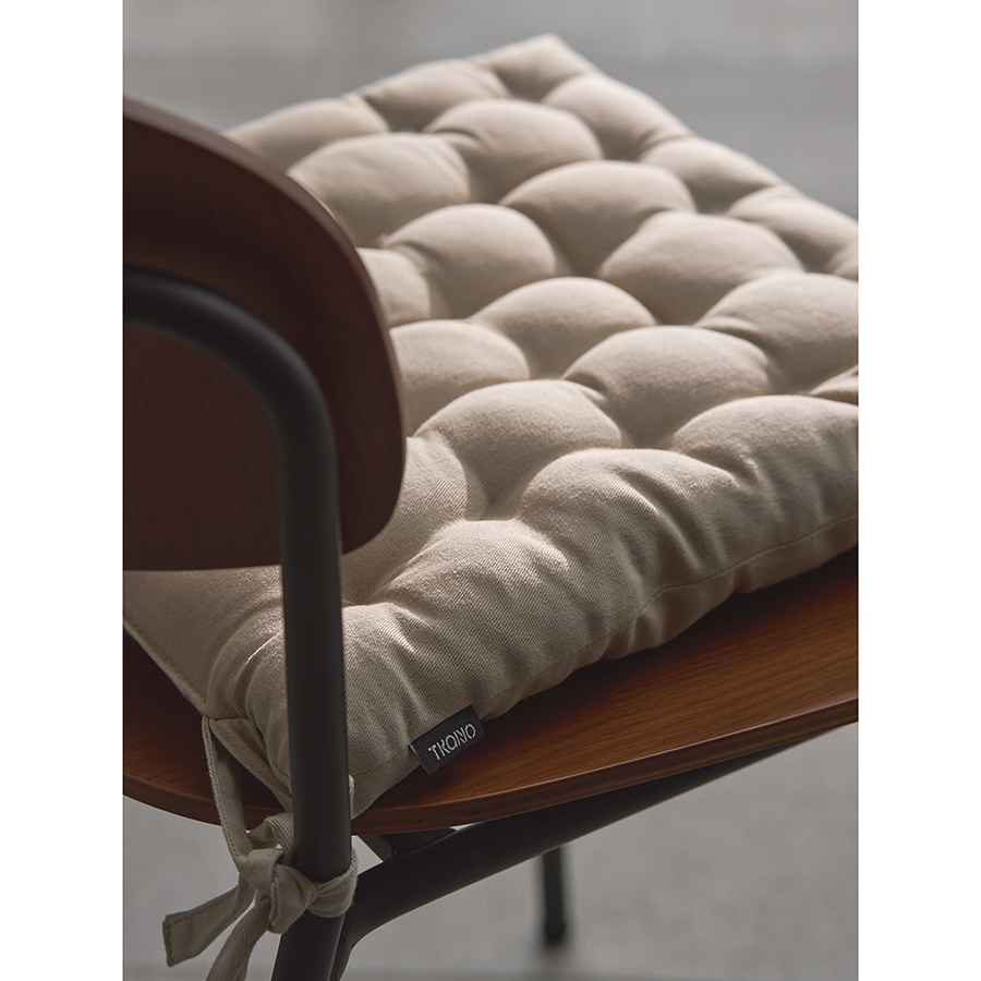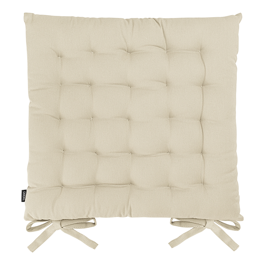 Подушка бежевого цвета из коллекции Essential станет отличным дополнением к вашей кухонной мебели. Ее можно использовать в качестве мягкой накладки на деревянные или металлические стулья, чтобы сделать их жесткую поверхность более удобной для сидения. Подушка легко фиксируется на ножках мебели с помощью специальных завязок. Однотонное изделие в лаконичном дизайне органично вписывается в любой современный интерьер. Чехол подушки изготовлен из экологичного и долговечного 100% хлопка. В качестве наполнителя используется плотный полиэстер, который позволяет изделию сохранять первоначальную форму на протяжении всего срока службы.