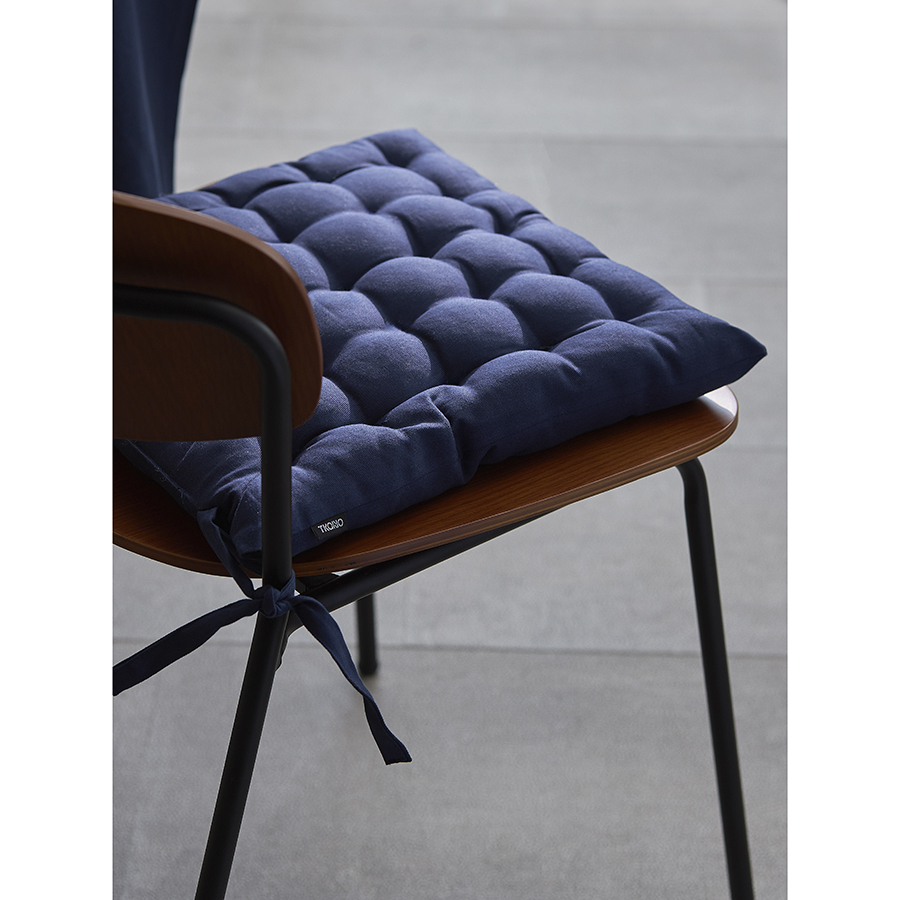 Подушка темно-синего цвета из коллекции Essential станет отличным дополнением к вашей кухонной мебели. Ее можно использовать в качестве мягкой накладки на деревянные или металлические стулья, чтобы сделать их жесткую поверхность более удобной для сидения. Подушка легко фиксируется на ножках мебели с помощью специальных завязок. Однотонное изделие в лаконичном дизайне органично вписывается в любой современный интерьер. Чехол подушки изготовлен из экологичного и долговечного 100% хлопка. В качестве наполнителя используется плотный полиэстер, который позволяет изделию сохранять первоначальную форму на протяжении всего срока службы.