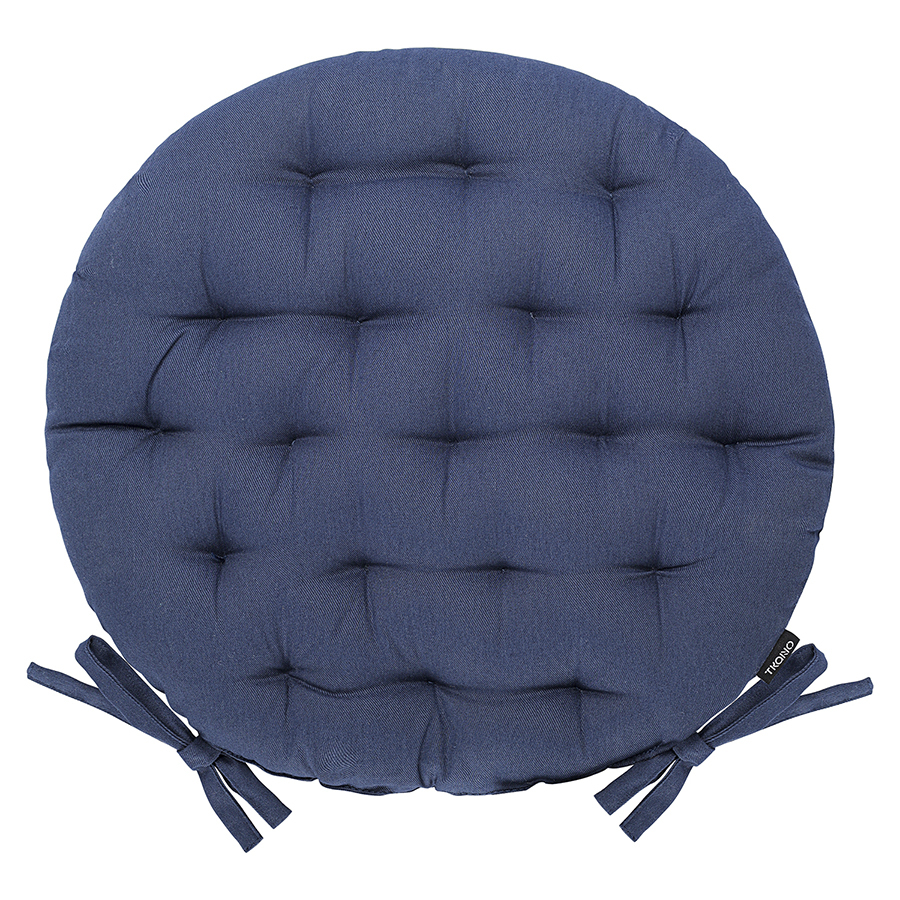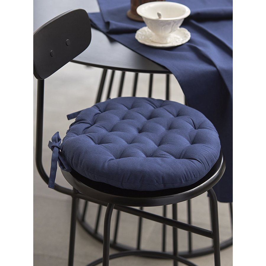 Подушка круглая темно-синего цвета из коллекции Essential станет отличным дополнением к вашей кухонной мебели. Ее можно использовать в качестве мягкой накладки на деревянные или металлические стулья, чтобы сделать их жесткую поверхность более удобной для сидения. Подушка легко фиксируется на ножках мебели с помощью специальных завязок. Однотонное изделие в лаконичном дизайне органично вписывается в любой современный интерьер. Чехол подушки изготовлен из экологичного и долговечного 100% хлопка. В качестве наполнителя используется плотный полиэстер, который позволяет изделию сохранять первоначальную форму на протяжении всего срока службы.