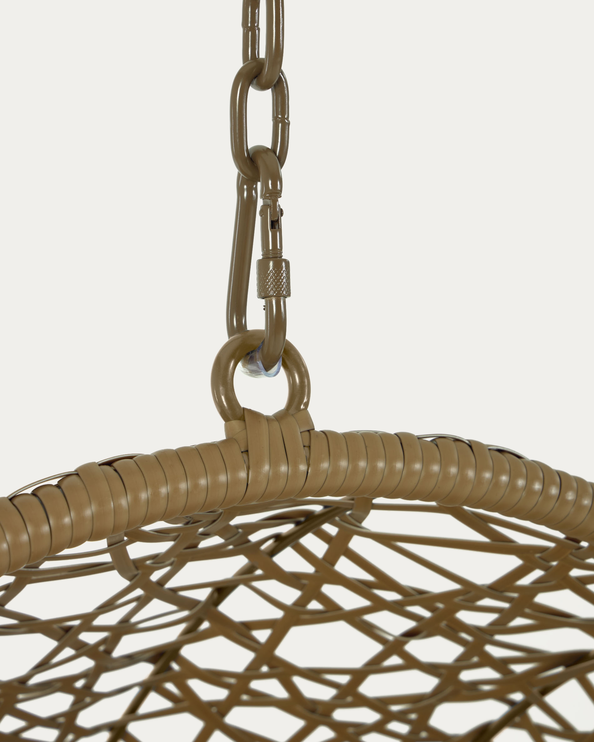 Подвесное кресло Florina состоит из металлической рамы и плетеного веревочного сиденья.