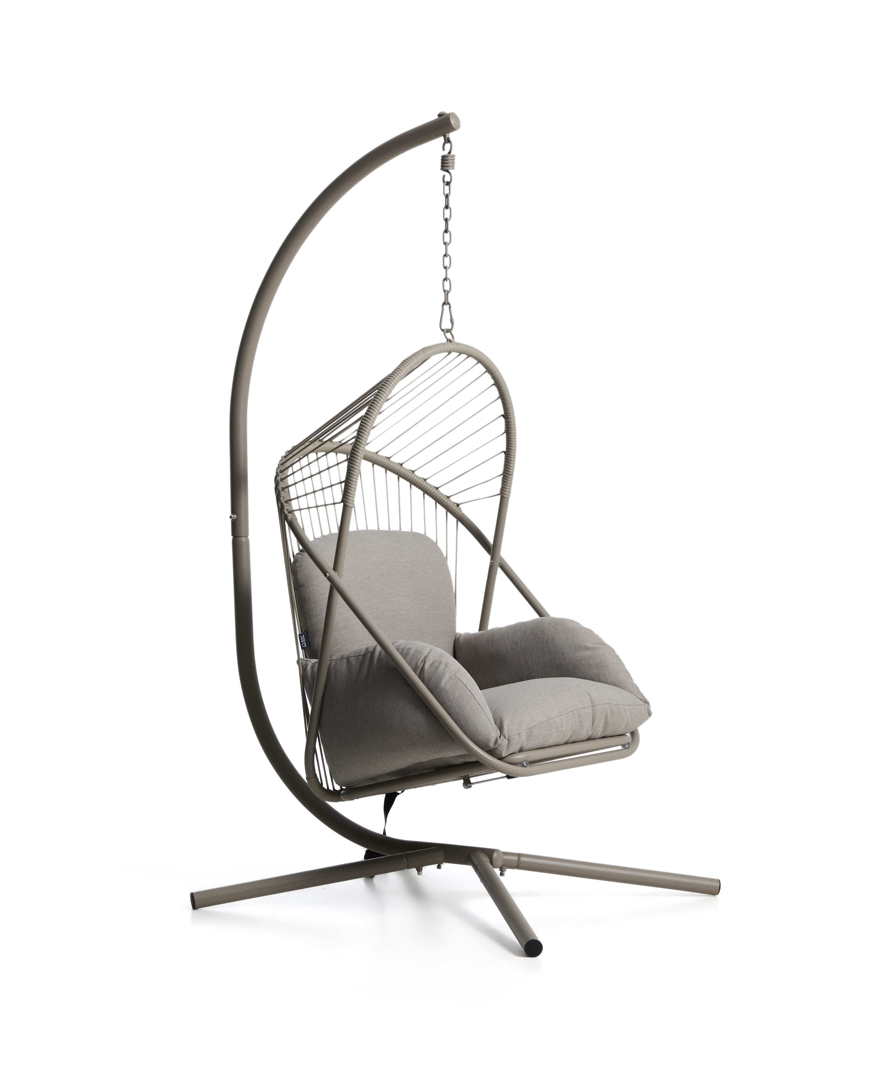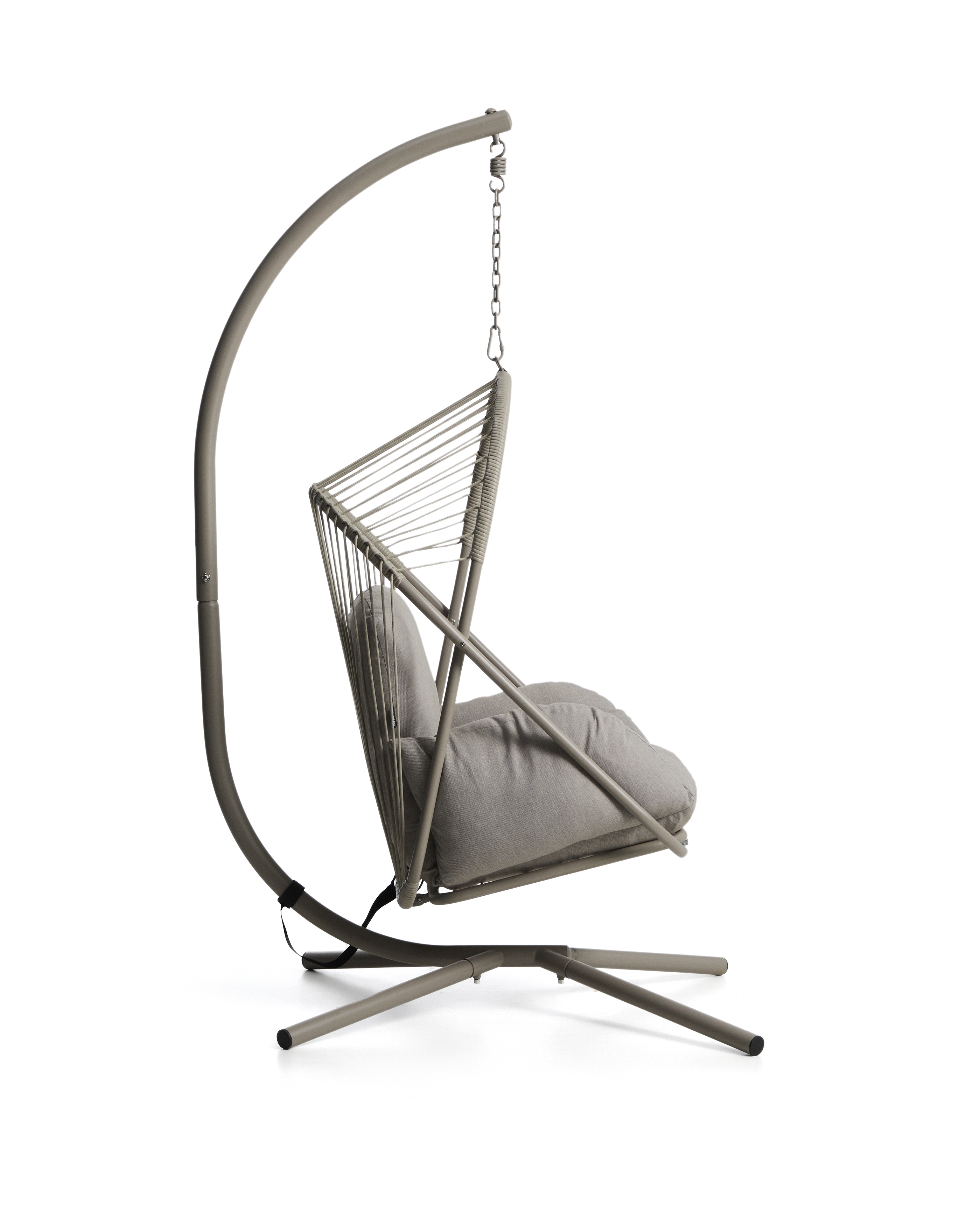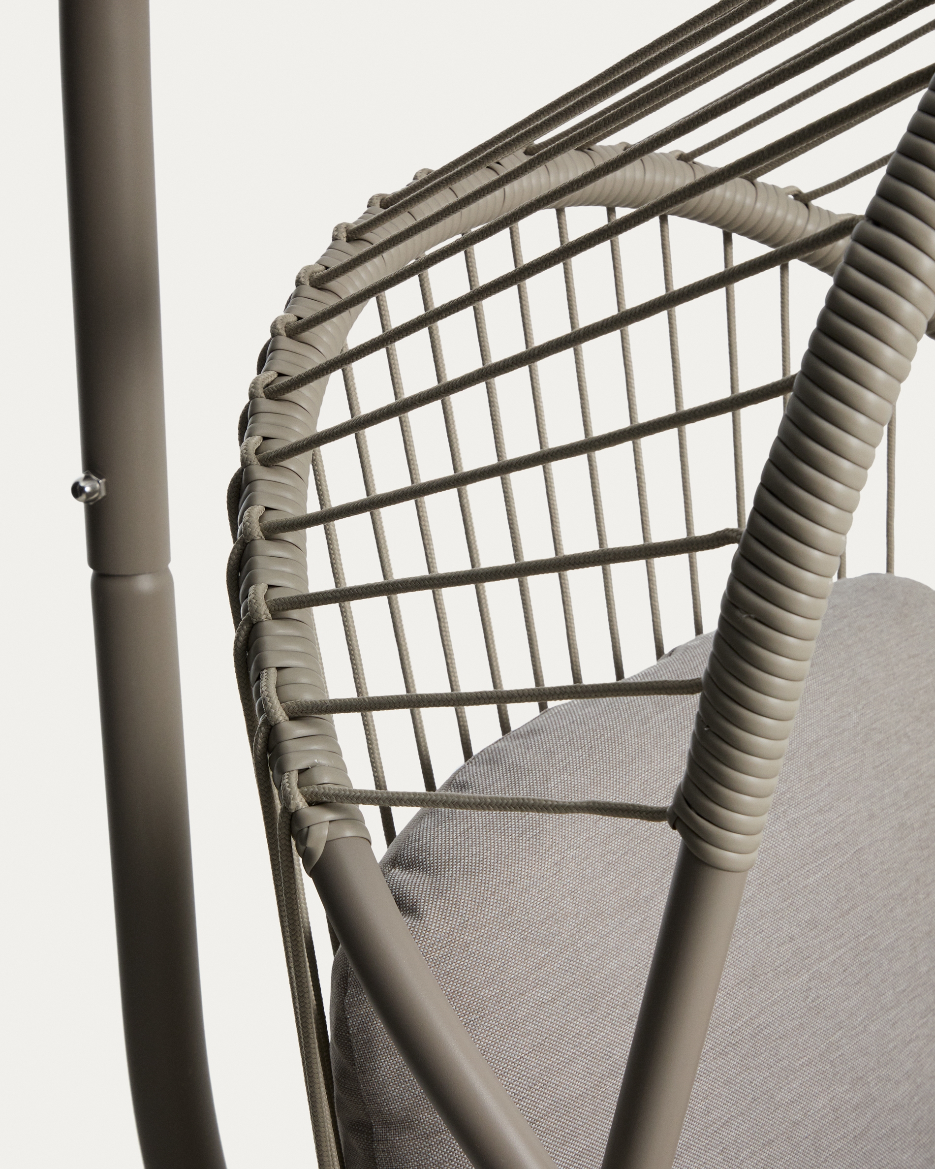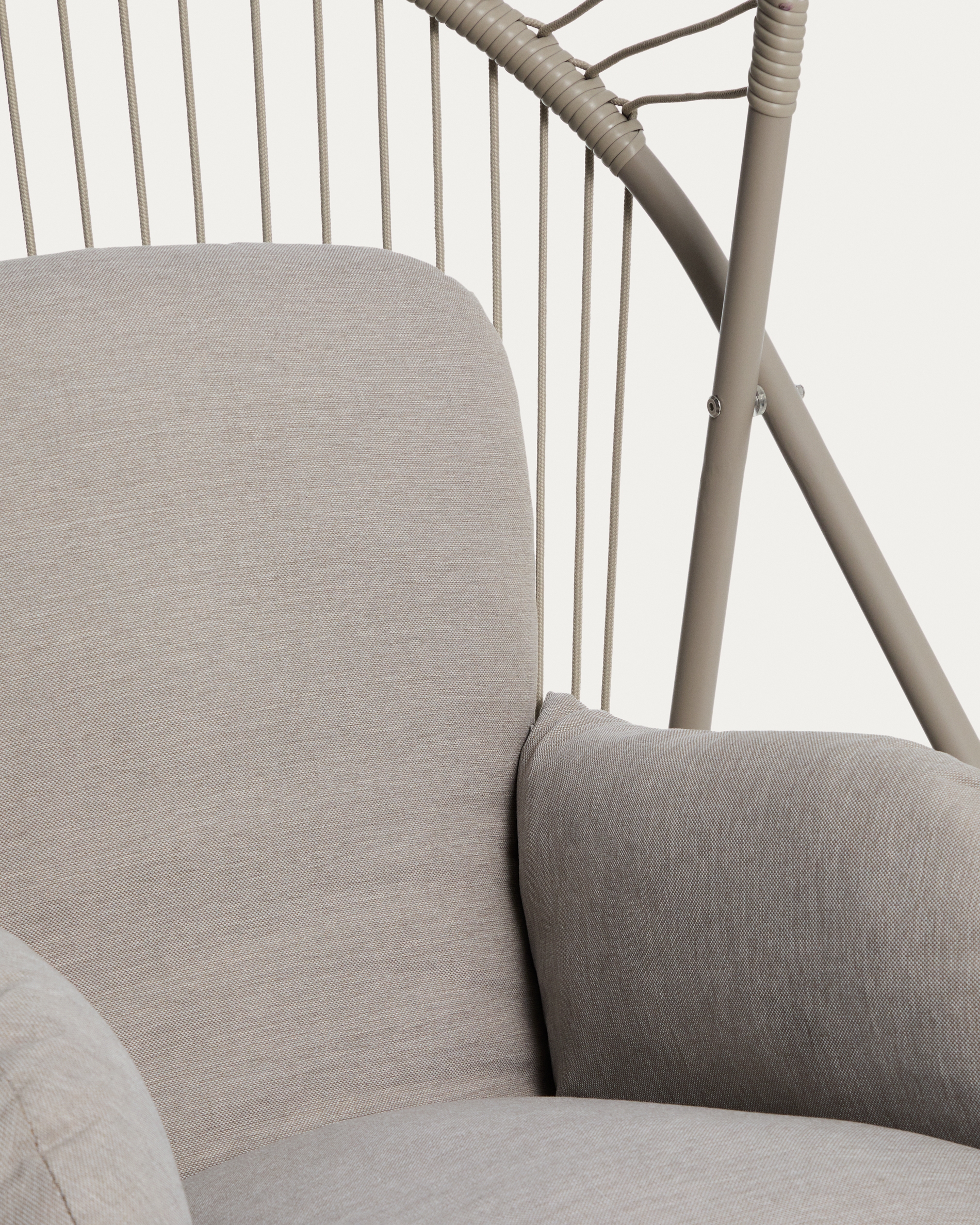 Подвесное кресло Livadi сочетает в себе визуальную легкость и комфорт, создавая изделие, предназначенное для использования как в помещении, так и на открытом воздухе. Его стальная конструкция обеспечивает высокую устойчивость к ржавчине и коррозии, что делает его идеальным для использования на открытом воздухе. Сиденье, изготовленное из сплетенного вручную бежевого синтетического шнура, устойчиво к ультрафиолетовым лучам и сохраняет свой внешний вид с течением времени. В комплект входят складное сиденье, съемная подставка для ног, цепь с карабином и съемная подушка для дополнительного комфорта.