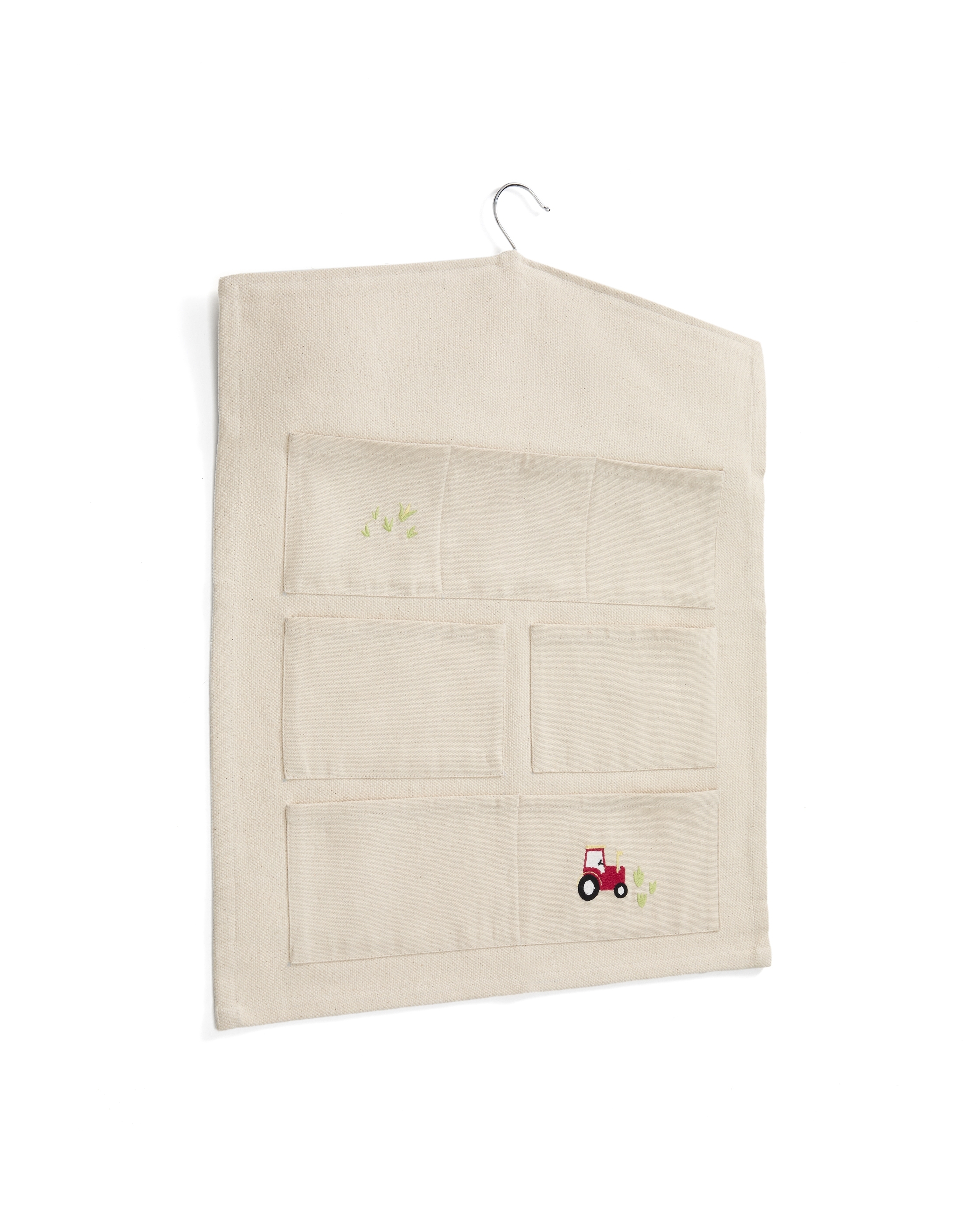 Организуйте вещи стильно и с комфортом. Подвесной органайзер Pecky, изготовленный из 100% хлопка, предлагает шесть карманов разных размеров для организации необходимых вещей для малышей.