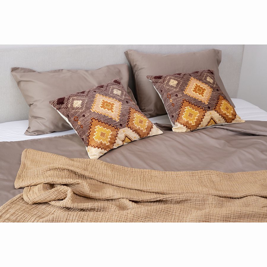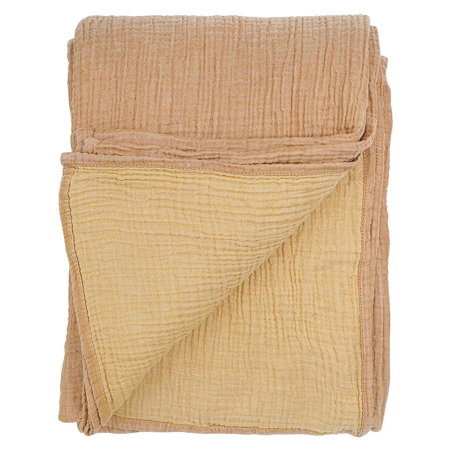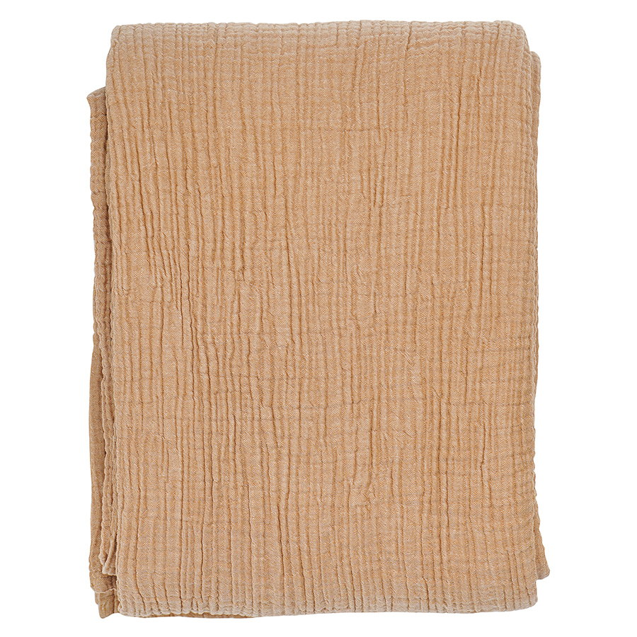 Покрывало двухсторонее из многослойного муслина цвета охры из коллекции Essential сделает интерьер спальни уютным и подарит чувство комфорта при использовании. Легкий, дышащий материал на основе экологичного хлопкового волокна приятный на ощупь, хорошо впитывает влагу, не электризуется и не вызывает аллергию. За счет специального переплетения нитей в каждом из четырех слоев ткань имеет интересную фактуру, обладает высокой плотностью, устойчивостью к износу, не скатывается и хорошо держит форму. Элегантная простота муслинового покрывала позволяет вписать его в различные стилевые решения интерьера: сканди, кантри, прованс, эклектика, бохо, эко, минимализм и другие.