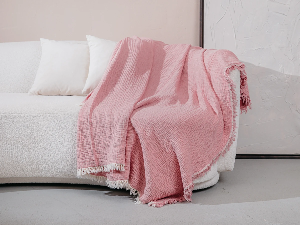 Наш плед покрывало изготавливается из высококачественной пряжи, поэтому на нем не образуются катышки, он устойчив к выцветанию, не колется и не теряет свой внешний вид даже после многократных стирок. Тип сырья – натуральное растительное. Состав волокон - 100% хлопок (муслин). Количество базовых слоев - 4. Нашим хлопковым пледам подходит машинная стирка на деликатном режиме при температуре воды не выше +30 градусов С и отжим на низких оборотах не более 600! Стирка с кондиционером сделает его мягче, а сушка в разложенном виде поможет избежать растягивания. Изделие отлично впитывает влагу и отлично пропускает воздух, одеяло будет служить и согревать Вас вечерами долгие годы!