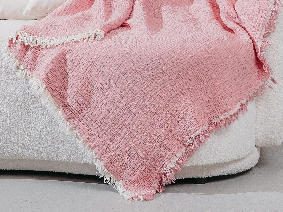 Тонкий и одновременно теплый, хлопковый плед универсален, он незаменим как в летний и зимний, так и демисезонные периоды: осенний и весенний. Такое трикотажное покрывало служит отличным home декором для дома и дачи. Нежные оттенки пледа накидки позволят преобразить любой интерьер, гармонично вписавшись в окружающую обстановку.