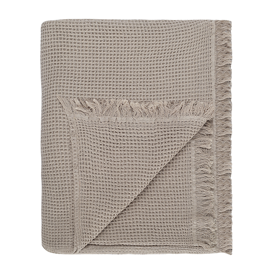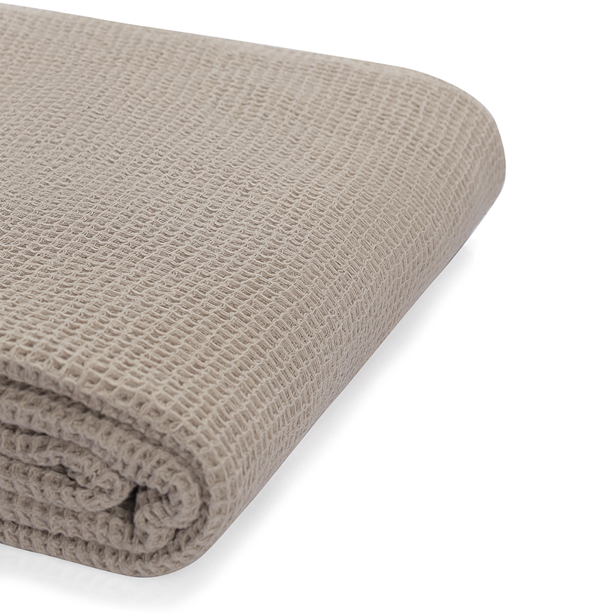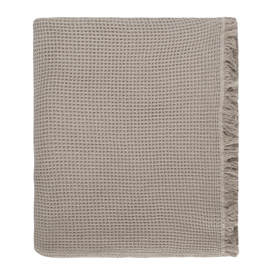 Покрывало вафельное из хлопка серо-бежевого цвета из коллекции Essential станет необычным акцентом в интерьере благодаря своей интересной фактуре. Мягкое и приятное на ощупь – оно создано, чтобы дарить тепло и делать любое пространство уютным и комфортным. Им можно красиво застелить диван или кровать, а также использовать его в качестве пледа.