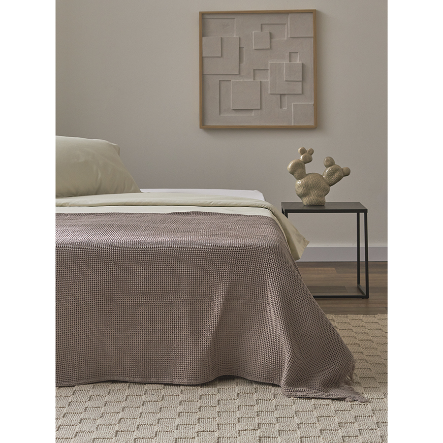 - Благодаря необычной “вафельной” фактуре покрывало выглядит стильно, при этом простое в уходе и практически не мнется.