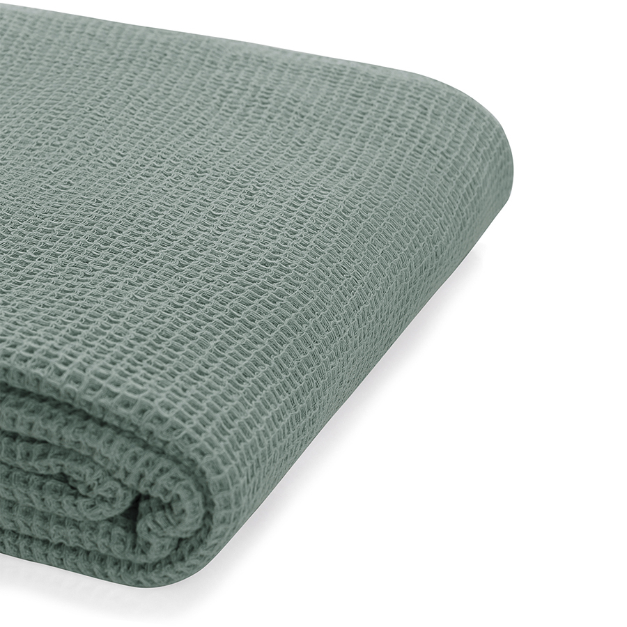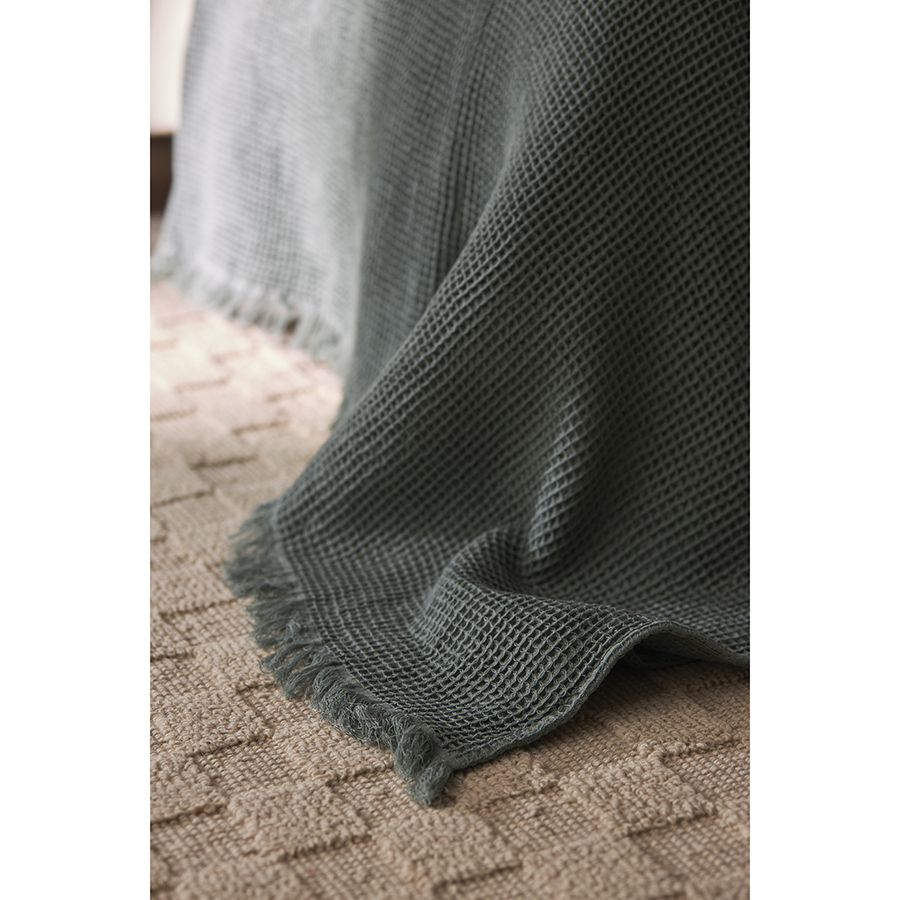 - Благодаря необычной “вафельной” фактуре покрывало выглядит стильно, при этом простое в уходе и практически не мнется.