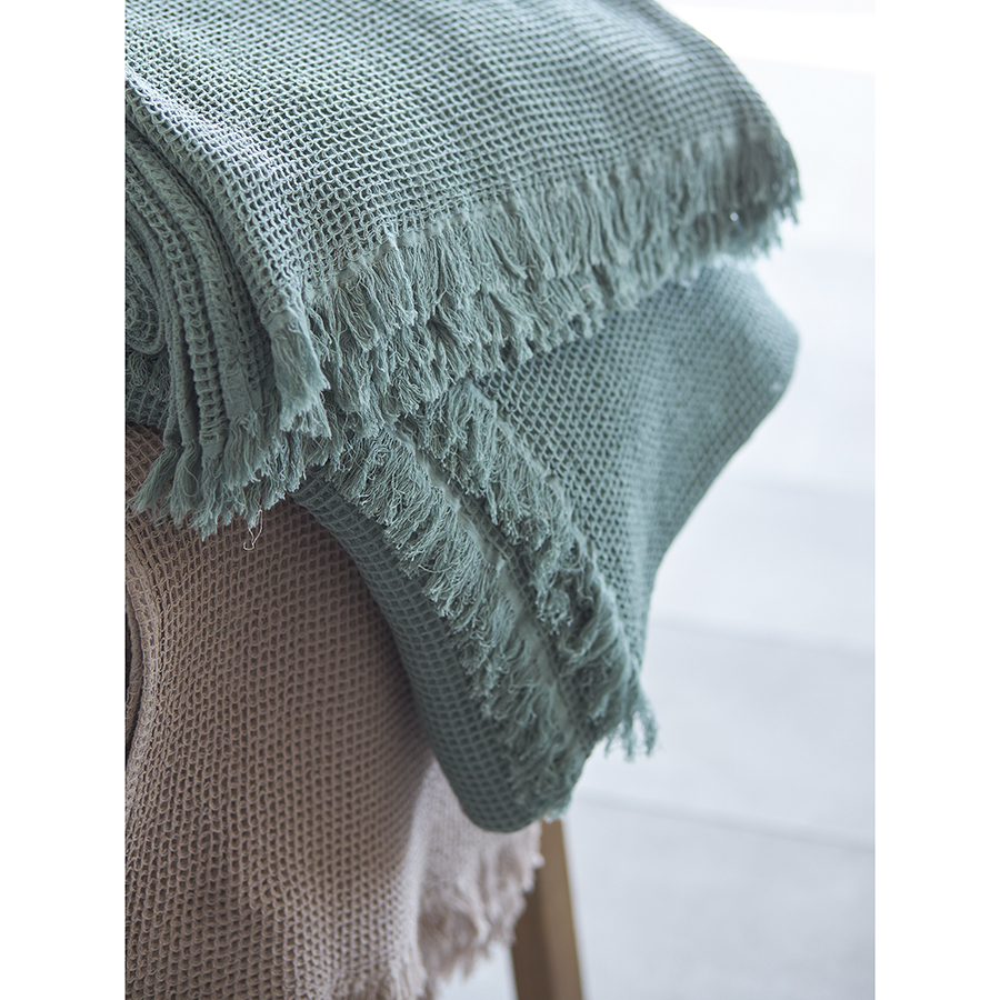Покрывало вафельное из хлопка цвета шалфея из коллекции Essential станет необычным акцентом в интерьере благодаря своей интересной фактуре. Мягкое и приятное на ощупь – оно создано, чтобы дарить тепло и делать любое пространство уютным и комфортным. Им можно красиво застелить диван или кровать, а также использовать его в качестве пледа.