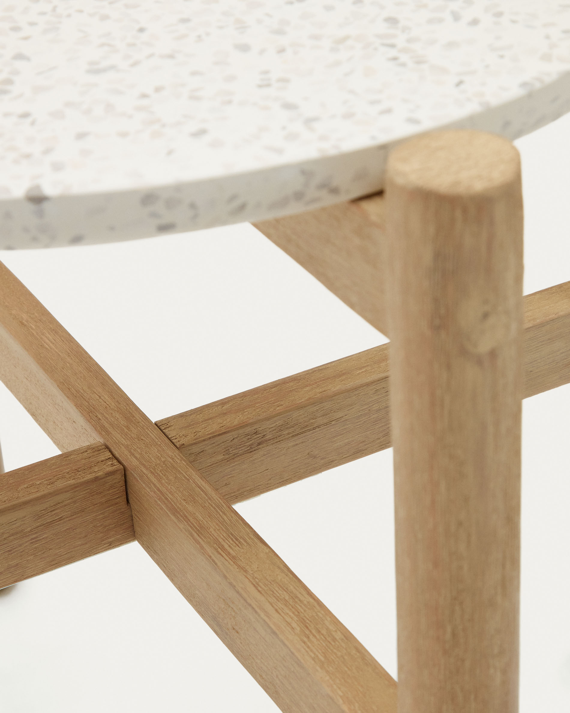 Стол круглый. Основание сделано из массива эвкалипта в натуральной отделке. Столешница создана из цемента. Ее толщина в 3 см гарантирует надежность во время эксплуатации и стойкость к высоким нагрузкам.