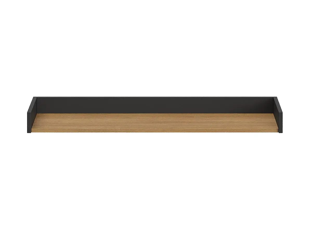 Представляет собой полку с задней стенкой и боковыми стенками. Крепится на стену с помощью врезных навесов, укомплектованных крюками и дюбелями. Материал – ЛДСтП толщиной 16мм.
