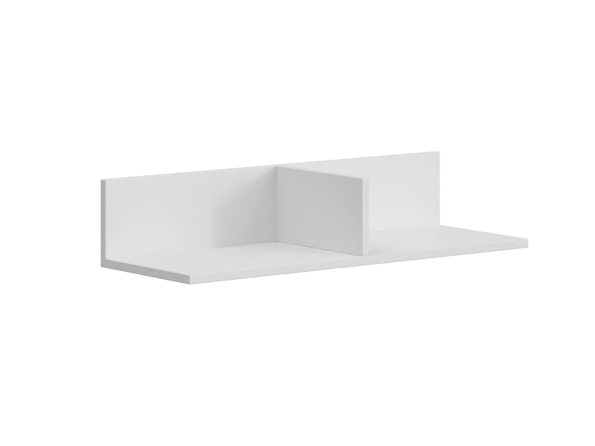 Полка представляет собой горизонтальный щит с задней стенкой и вертикальной перегородкой. Полка имеет навески для крепления к стене. Изготовлена из ЛДСП толщиной 16 мм.
