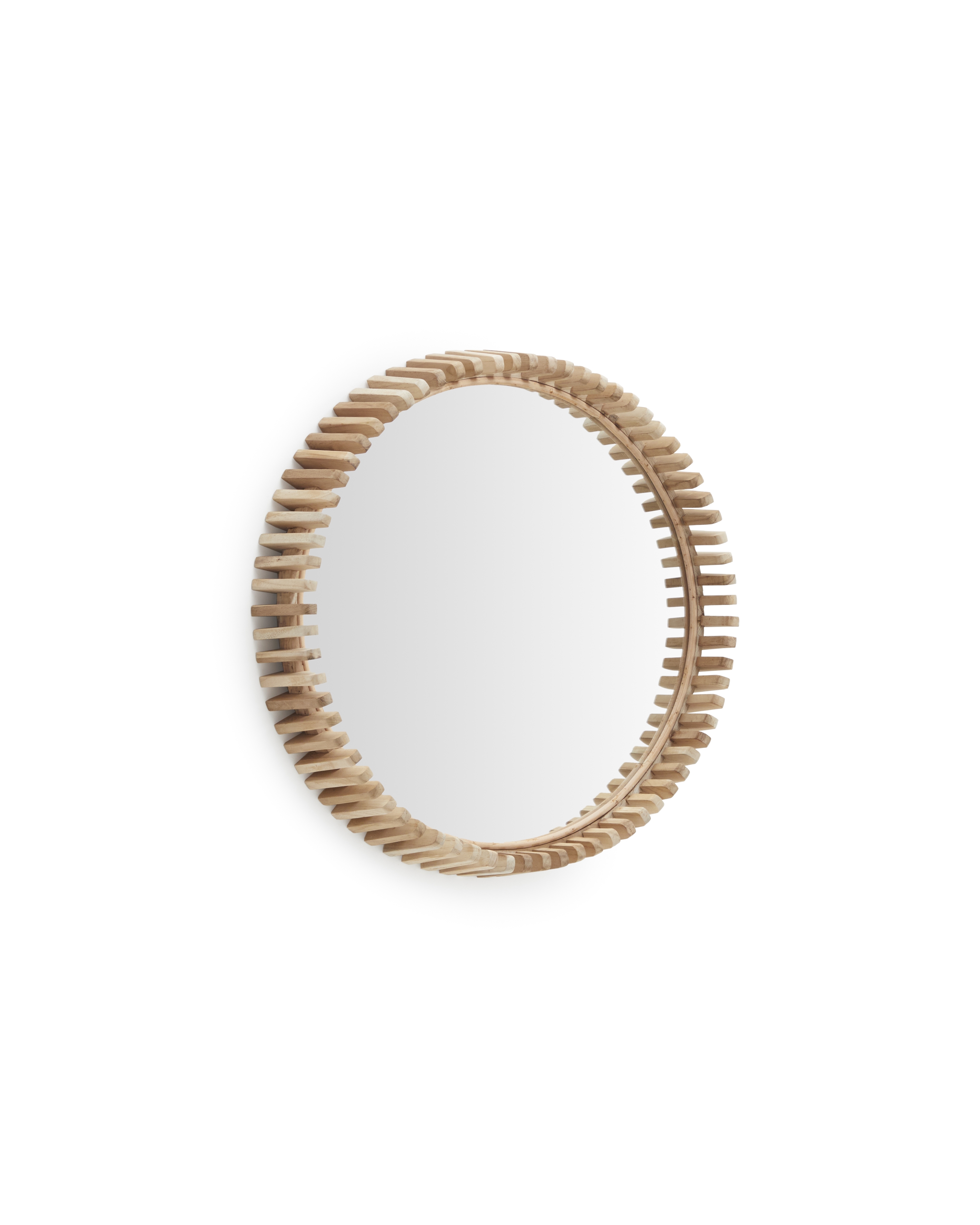 Зеркало Polke имеет раму из резных частей, расположенных одна за другой, изготовленных из массива натурального тикового дерева. Это изделие, диаметр которого можно адаптировать к любому пространству, а дизайн соответствует любому модному стилю.