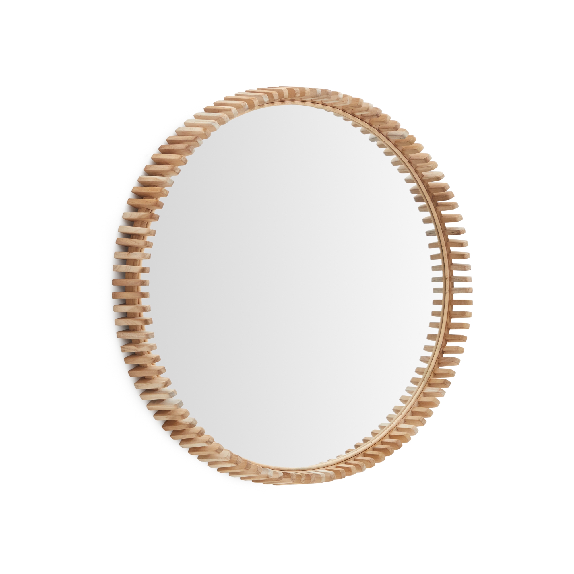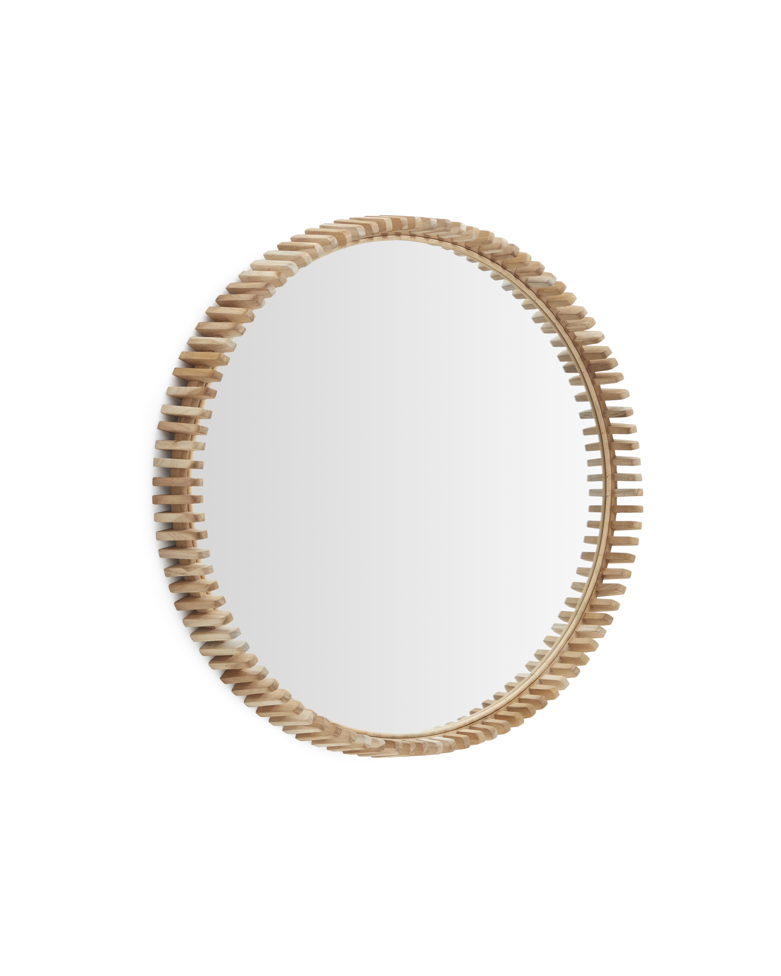 Зеркало Polke имеет раму из резных частей, расположенных одна за другой, изготовленных из массива натурального тикового дерева. Это изделие, диаметр которого можно адаптировать к любому пространству, а дизайн соответствует любому модному стилю.