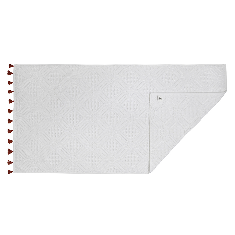Банное полотенце из коллекции Essential – качественный текстиль из экологичного хлопка, который идеально подойдет для ежедневного использования и украсит вашу ванную комнату. Мягкая, приятная на ощупь ткань превосходно впитывает влагу и дарит комфорт при контакте с кожей. Материал абсолютно гипоаллергенен, так как не содержит синтетических волокон, при этом обладает высокими показателями прочности и износостойкости. Дизайн полотенца вдохновлен этническими мотивами, что подчеркивают декоративные элементы в виде кисточек контрастного оттенка.