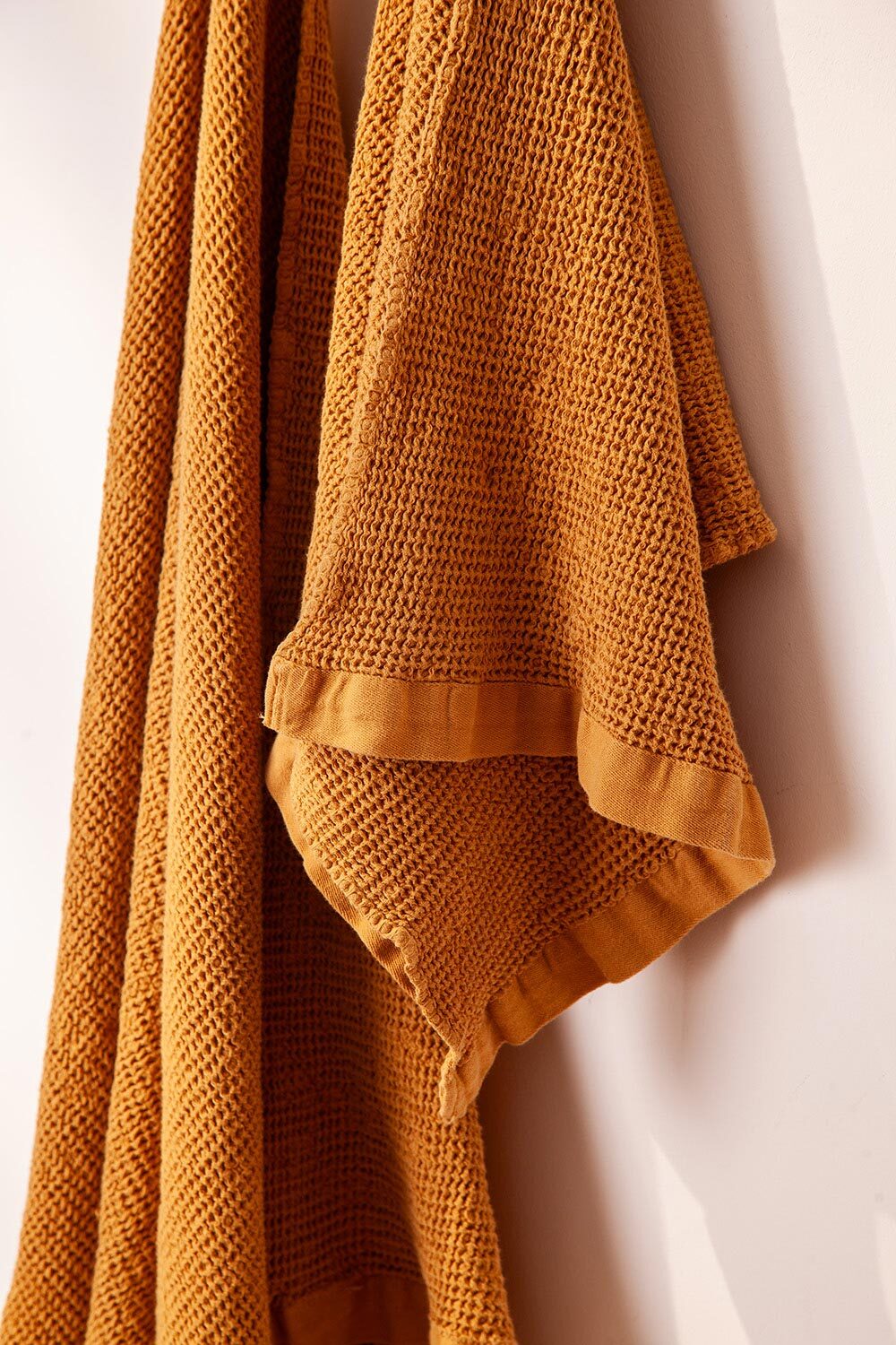 Полотенце банное из умягченной вафли цвета охры из коллекции Essential подарит ощущение комфорта после водных процедур, а также украсит интерьер вашей ванной комнаты.