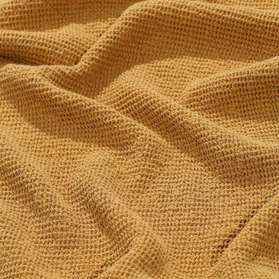 - Благодаря вафельному плетению материал хорошо пропускает воздух, быстро сохнет и отличается легкостью.