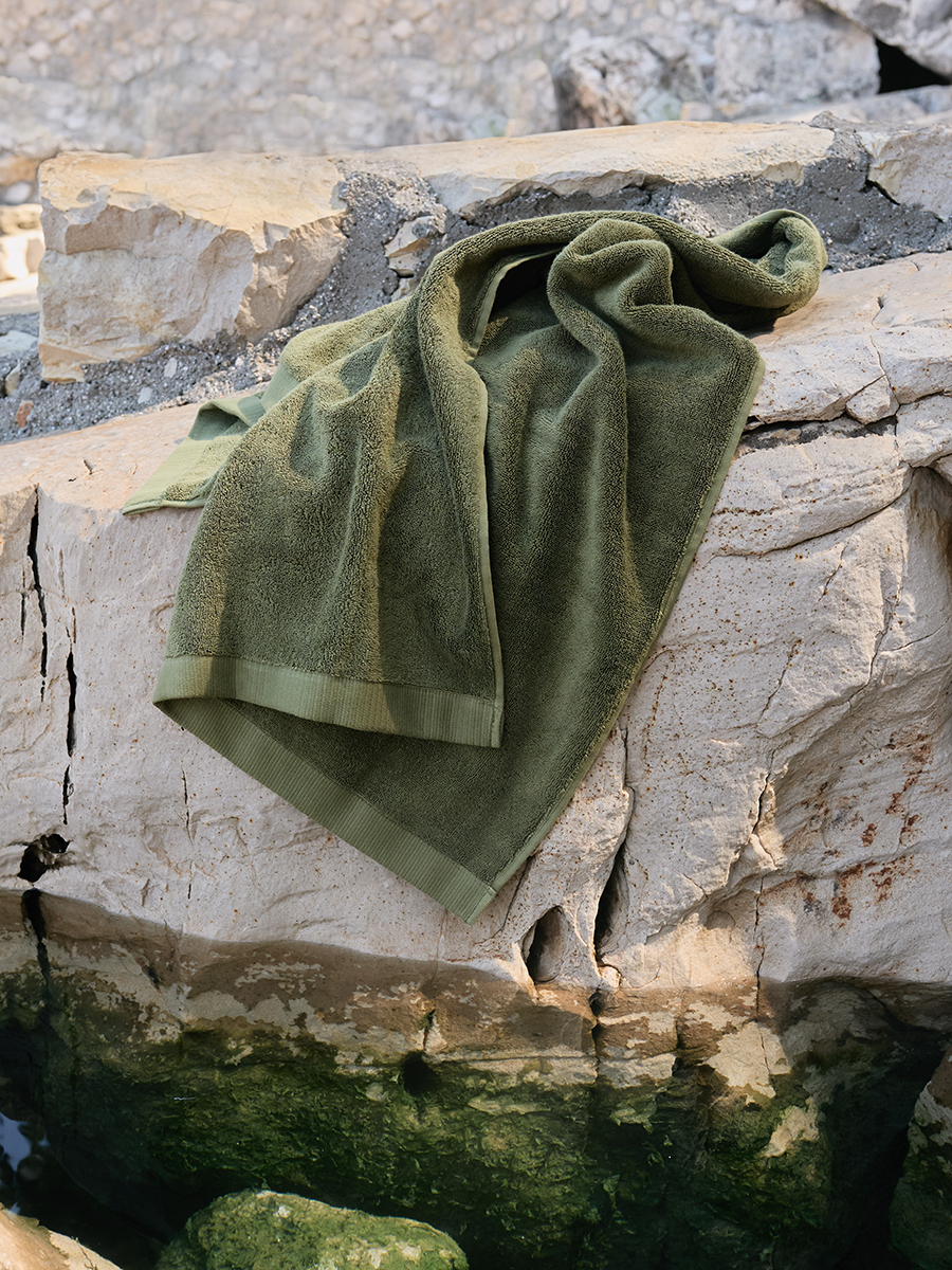 Однотонное полотенце оливкового цвета из коллекции Essential понравится тем, кто любит качественные и стильные банные принадлежности. Мягкая, при этом прочная пряжа изготавливается из лучших сортов длинноволокнистого хлопка методом тщательного прочесывания, что значительно улучшает ее качественные характеристики. Изделие быстро впитывает влагу, оставляя приятное ощущение свежести и чистоты. Полотенце отличается износостойкостью: хорошо держит форму и сохраняет впитывающие свойства на протяжении длительного времени.