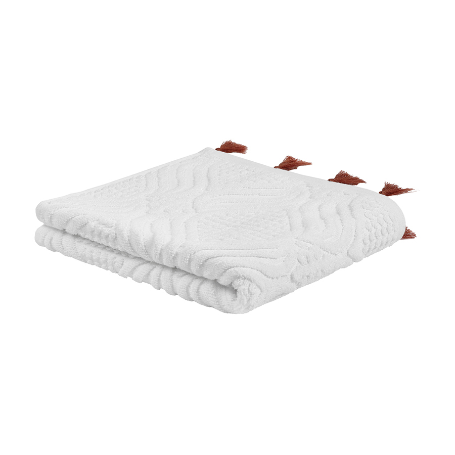 Полотенце для рук из коллекции Essential – качественный текстиль из экологичного хлопка, который идеально подойдет для ежедневного использования и украсит вашу ванную комнату. Мягкая, приятная на ощупь ткань превосходно впитывает влагу и дарит комфорт при контакте с кожей. Материал абсолютно гипоаллергенен, так как не содержит синтетических волокон, при этом обладает высокими показателями прочности и износостойкости. Дизайн полотенца вдохновлен этническими мотивами, что подчеркивают декоративные элементы в виде кисточек контрастного оттенка.