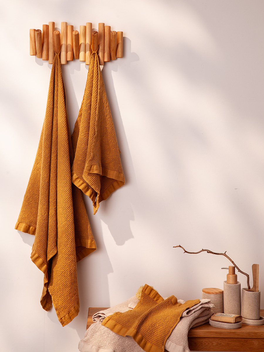 Полотенце для рук из умягченной вафли цвета охры из коллекции Essential подарит ощущение комфорта после водных процедур, а также украсит интерьер вашей ванной комнаты.