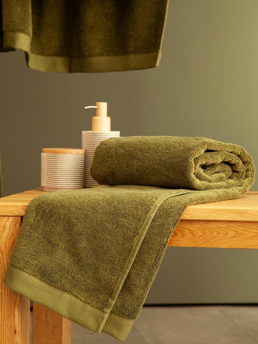Полотенце для рук оливкового цвета из коллекции Essential – отличный вариант для тех, кто любит качественный однотонный текстиль. Мягкая, при этом прочная пряжа изготавливается из лучших сортов длинноволокнистого хлопка методом тщательного прочесывания, что значительно улучшает ее качественные характеристики. Изделие быстро впитывает влагу, оставляя приятное ощущение свежести и чистоты. Можно дополнить банным полотенцем и полотенцем для лица такого же оттенка.