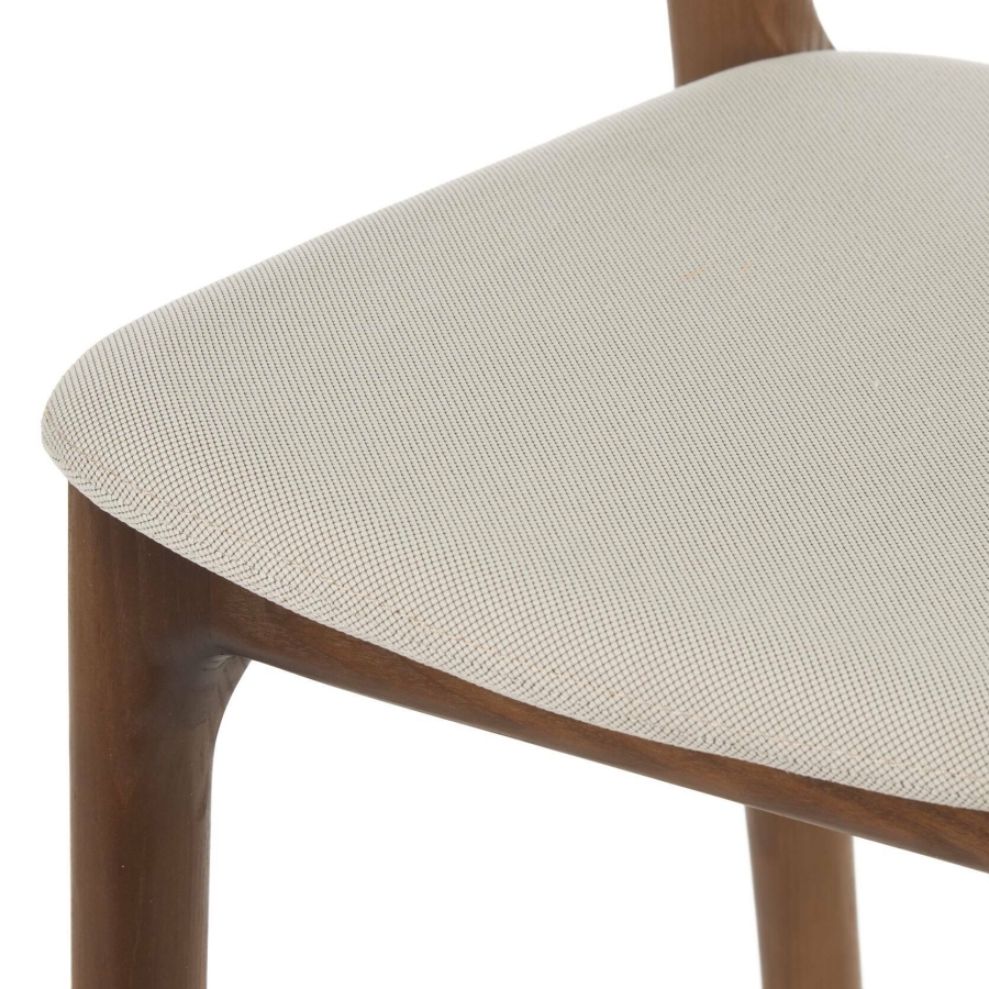 Изготовленный из натурального американского ясеня, он отличается прочностью и долговечностью, а обивка из водоотталкивающей ткани Milos02 придает стулу элегантный вид и обеспечивает комфорт.