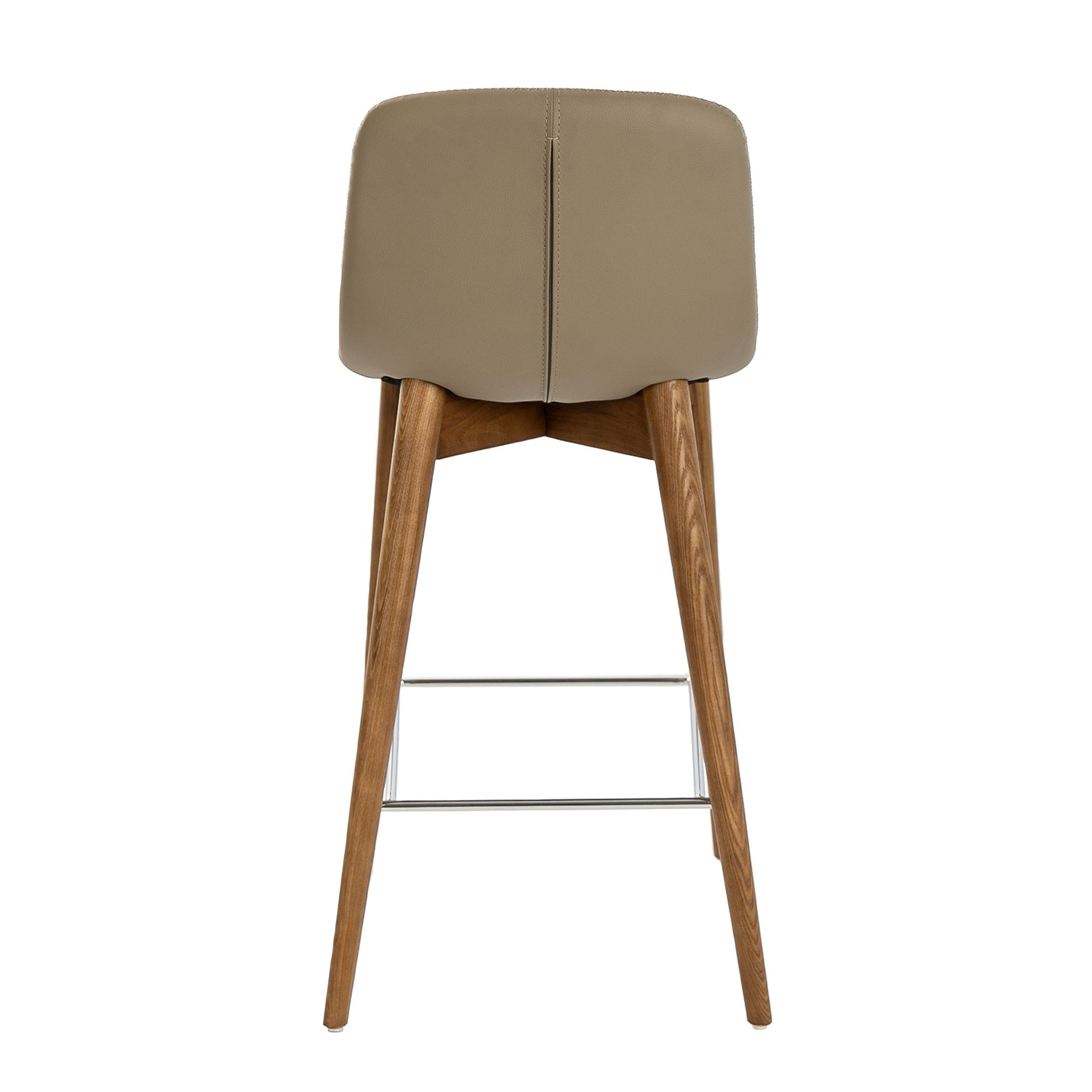 Опора изготовлена из натурального дерева. Для долговечности она покрыта бесцветным лаком. Внизу ножки (их традиционно четыре) соединены поперечными перекладинами из хромированной стали. Они служат подставкой для ног и в целом делают опору более надежной и устойчивой.
