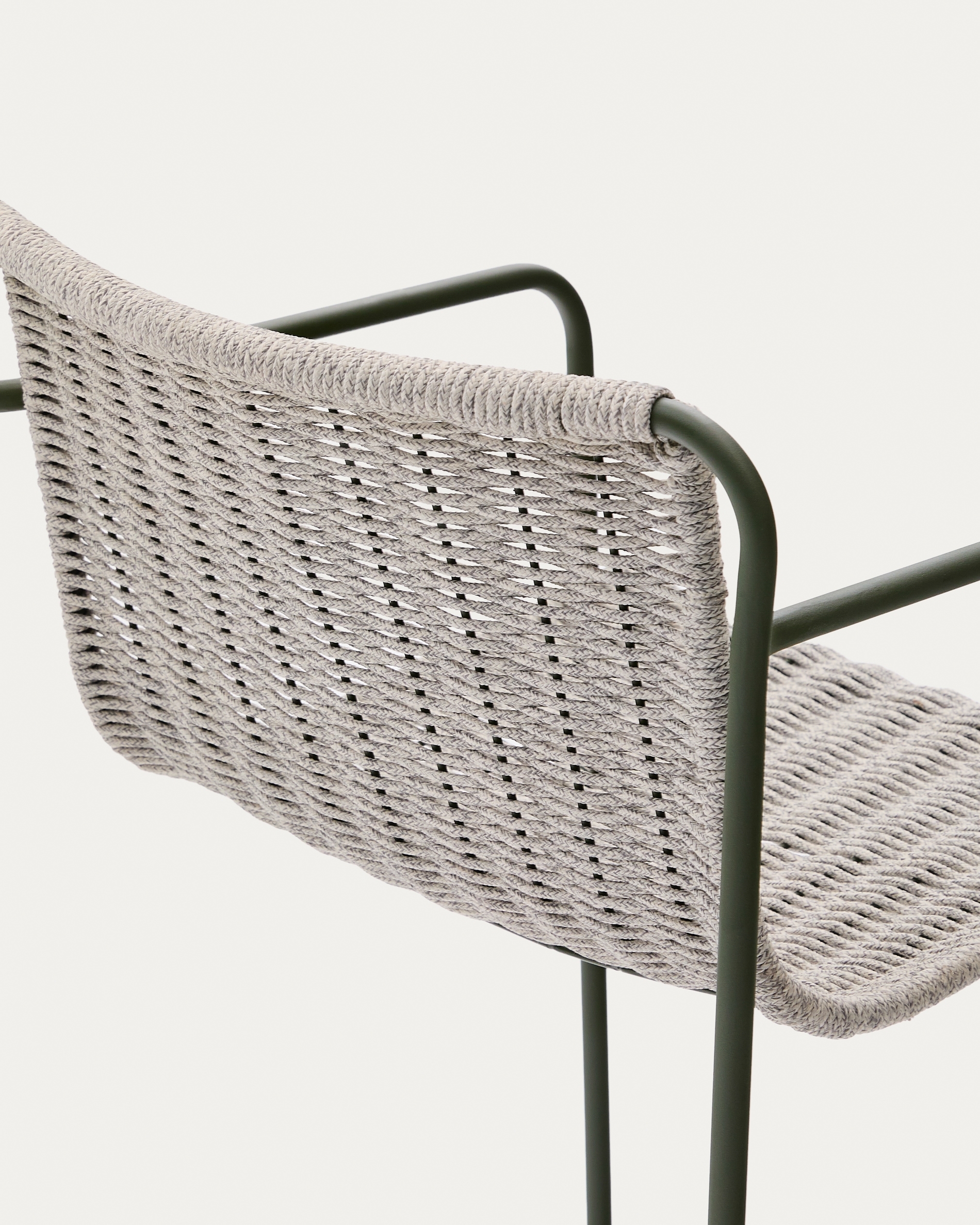 Коллекция, в каждой детали которой прослеживается дух Средиземноморья, — дань уважения мастерству, благодаря которому яркие и завораживающие предметы оживают. Разработанные эксклюзивно студией Yonoh для Kave Home, они сочетают в себе лучшее из традиционного и современного. На столах вручную выложена мозаичная плитка, создавая столешницу с геометрическими линиями, которая рассказывает историю ремесленных мастерских. Она стоит на ярко-зелёной металлической конструкции — современный контраст, преображающий пространство. Стулья, табуреты, кресла и подставки для ног дополняют эту композицию текстильными сиденьями и спинками из веревочных канатов, сплетённых вручную на стальных стержнях. Конструкция прочная и в то же время лёгкая, идеально подходит для того, чтобы наслаждаться свежестью на открытом воздухе. Каждый стежок ручной работы свидетельствует о стремлении к качеству и долговечности, устойчивости к солнцу и времени. Это приглашение создать уголок, который отражает дух Средиземноморья и переносит его в настоящее, предлагая свежий, функциональный дизайн, такой же неподдельный, как и вдохновившее его вдохновение.