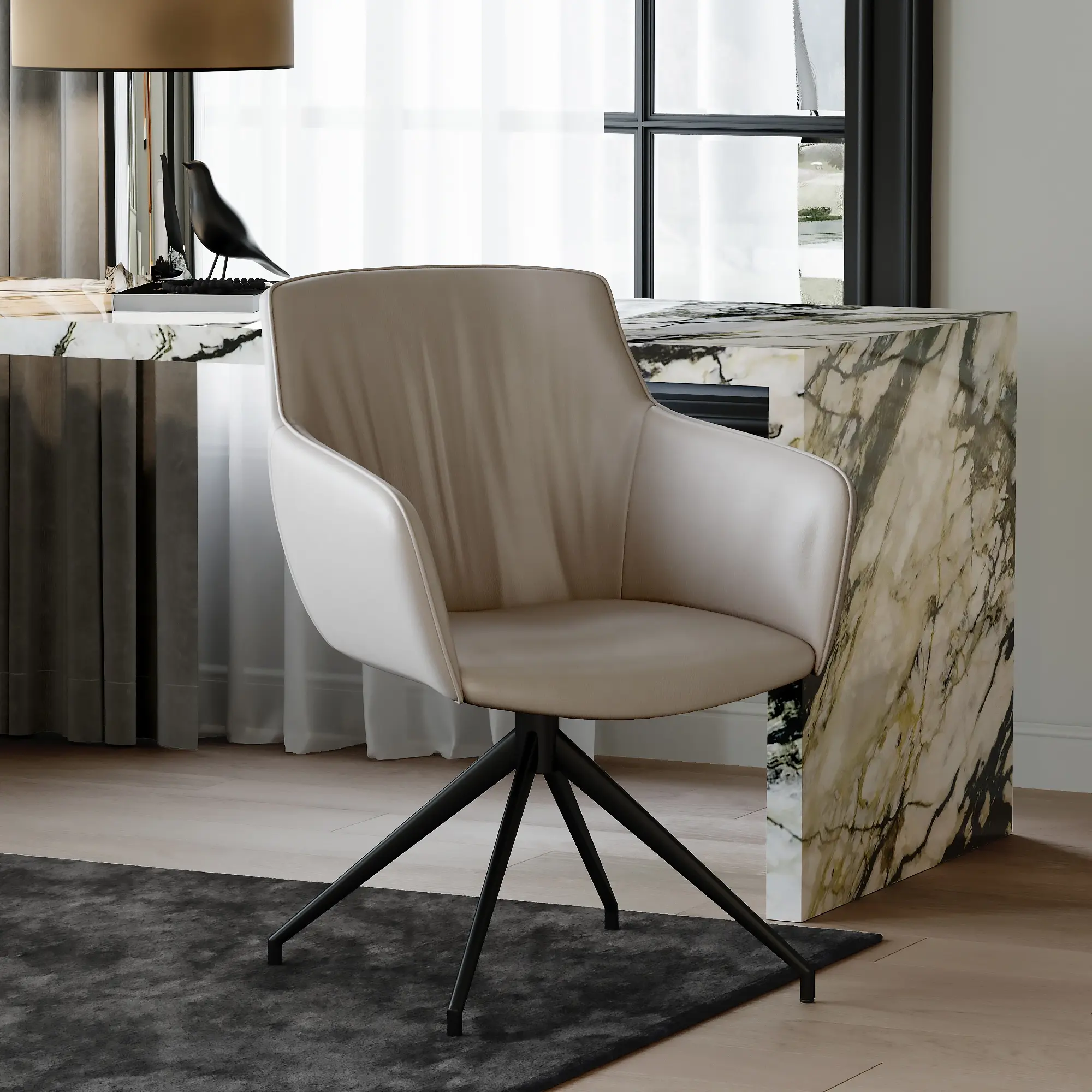 Стиль, комфорт и элегантность - все это воплощено в кресле Sofia! Его изогнутая форма обеспечивает надежность и прочность, и также создает комфорт и уют. Глубокий теплый серый цвет кресла и черные ножки создают эффектный контраст, который привлекает внимание и добавляет шарма в интерьер.