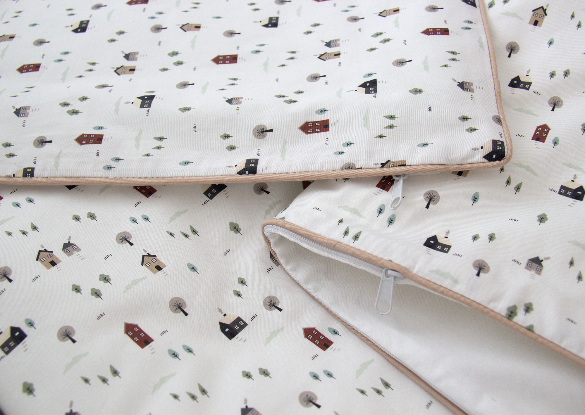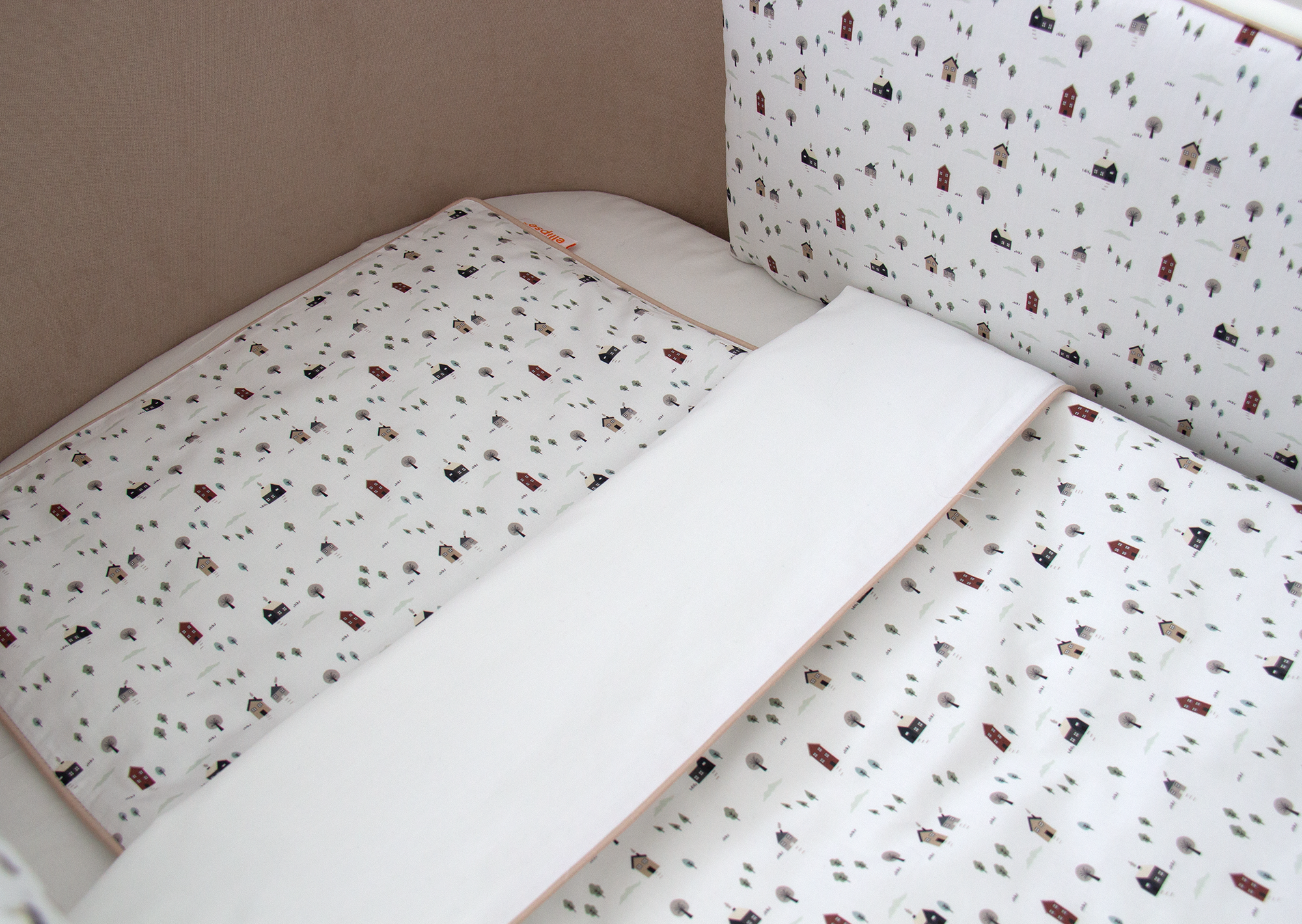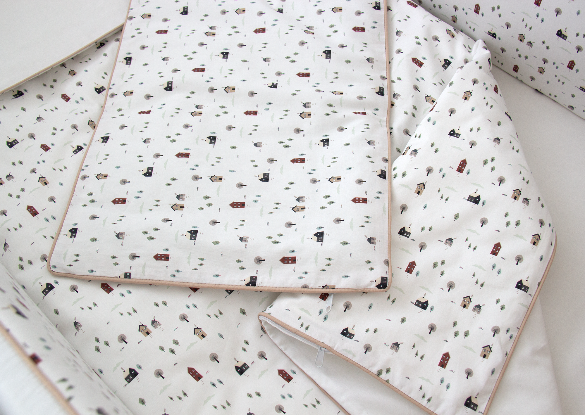 Постельное бельё в детскую кроватку «Домики» (кант, сатин)