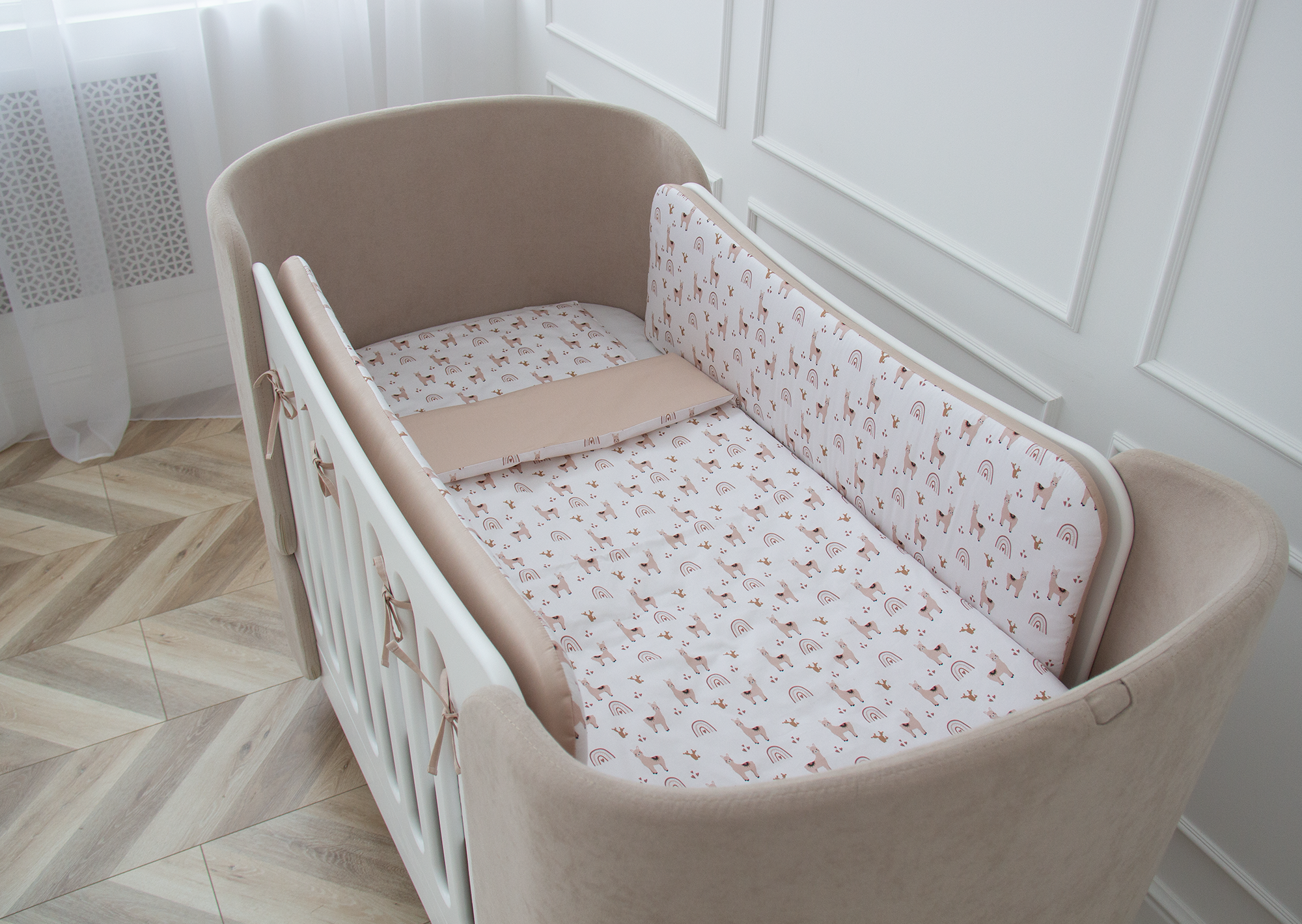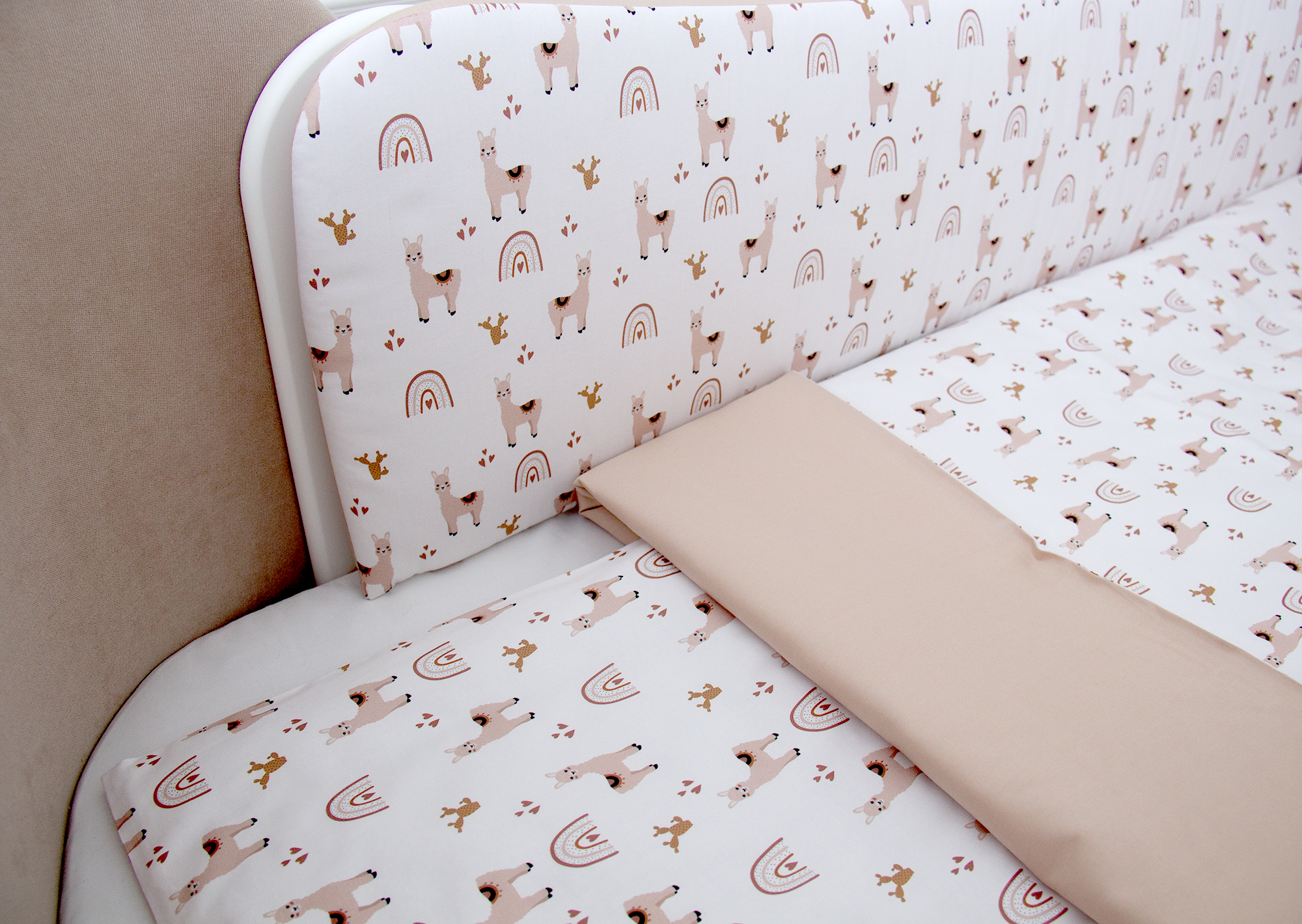 Постельное бельё в детскую кроватку «Лама» (бежевый, сатин)