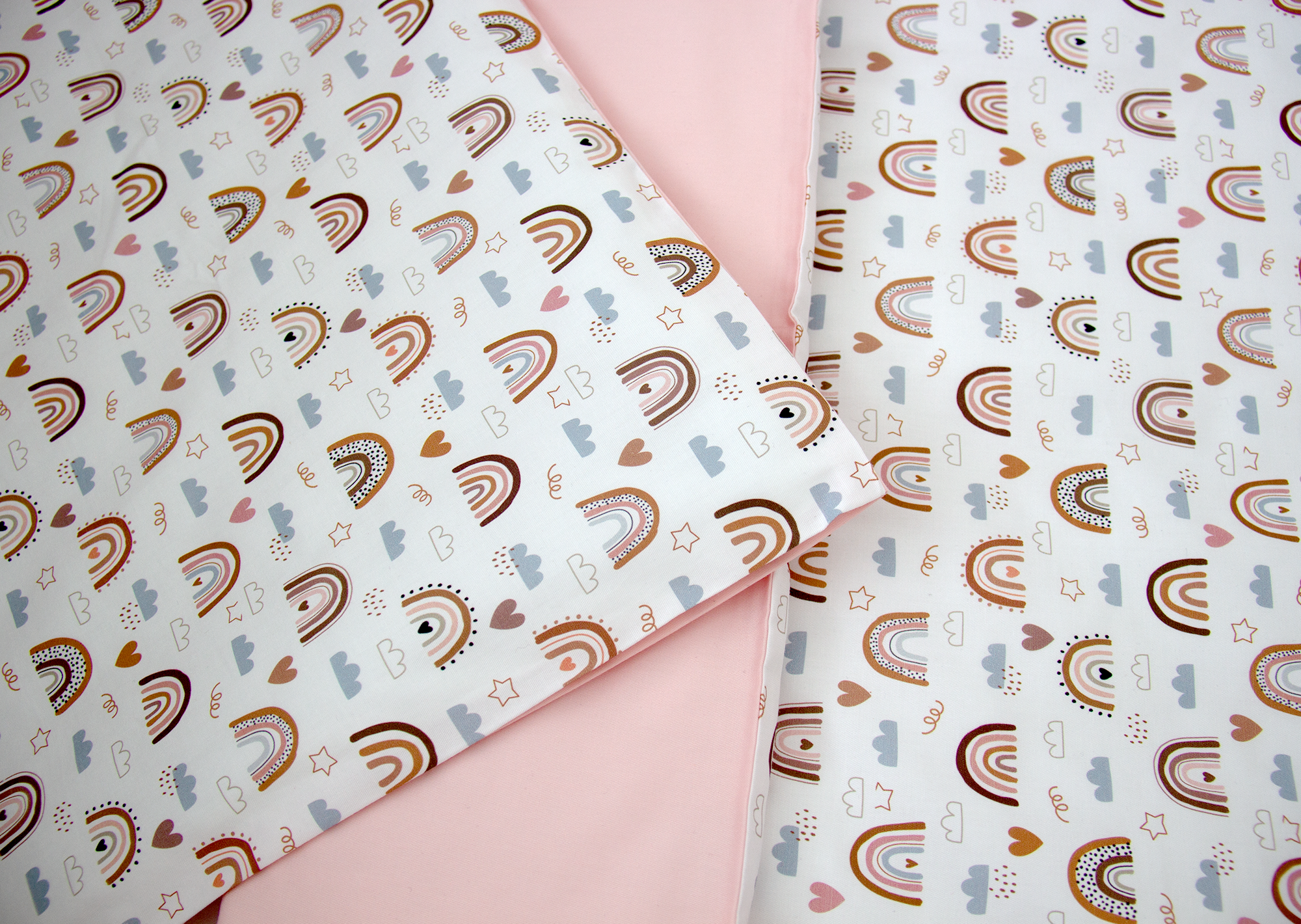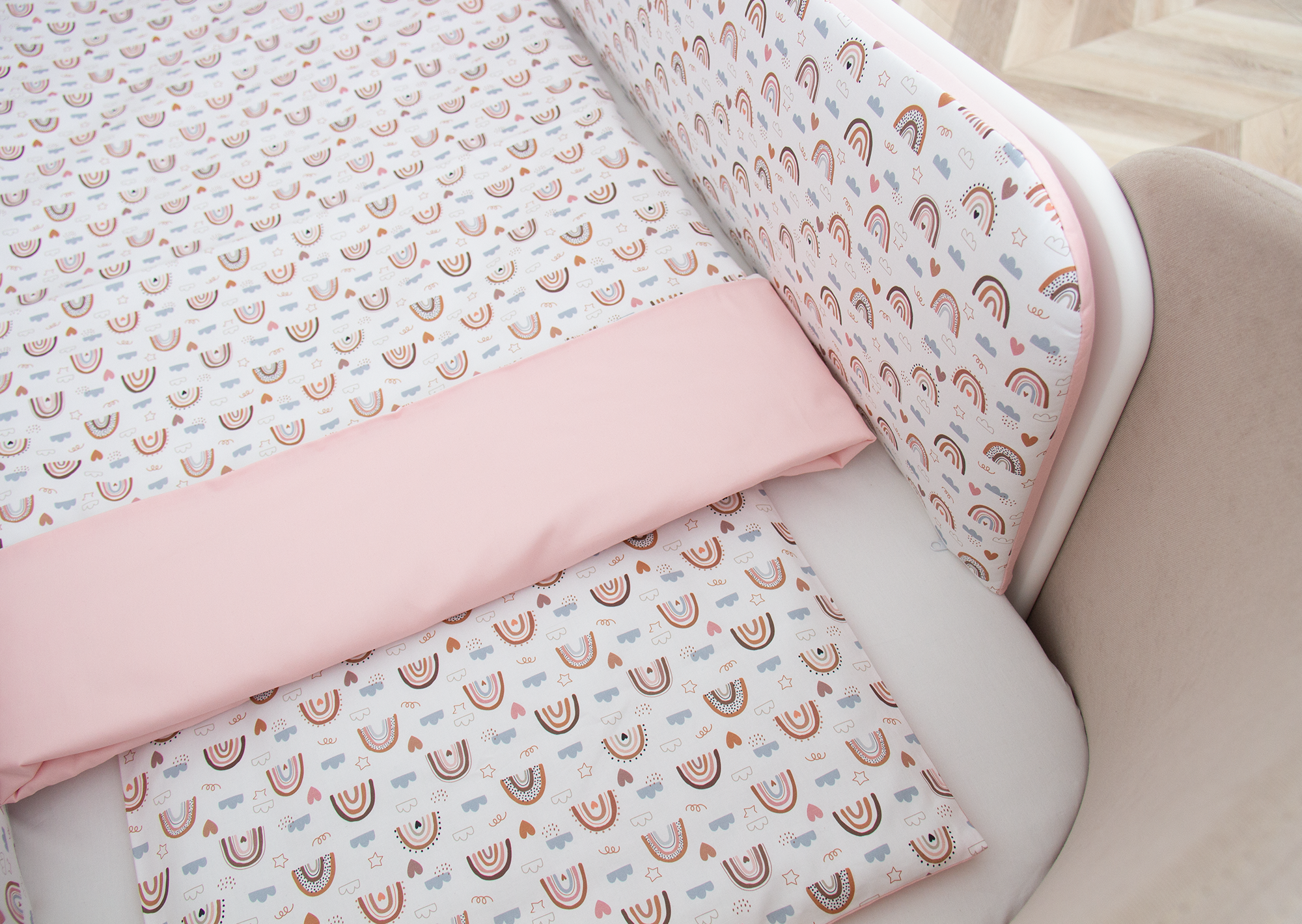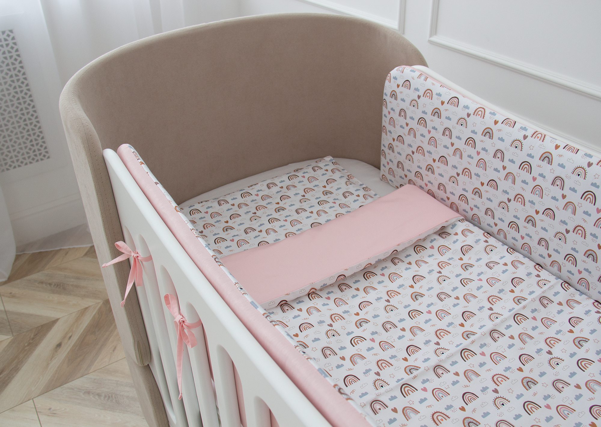 Постельное бельё в детскую кроватку «Милая радуга» (розовый, сатин)