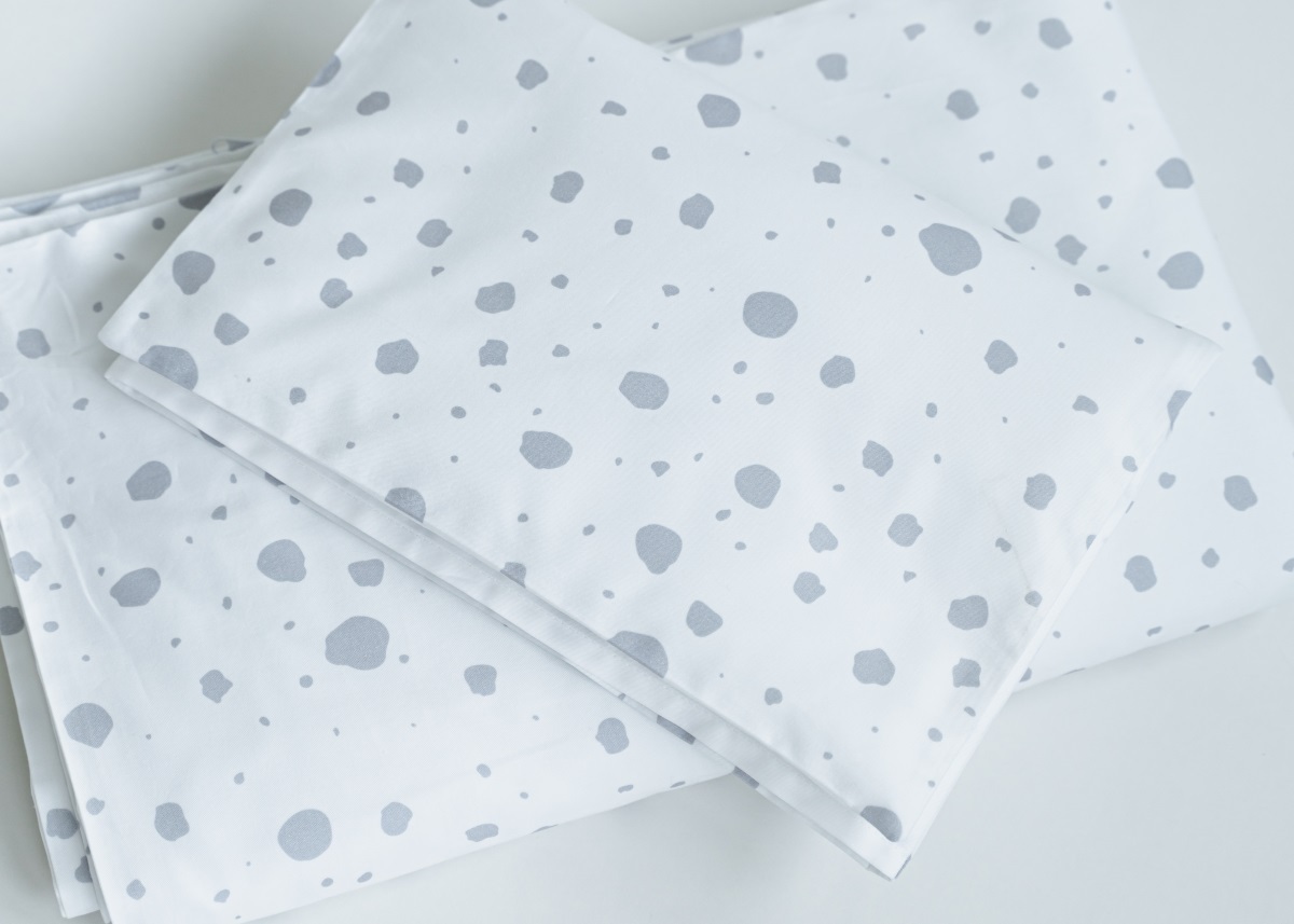 Постельное бельё в детскую кроватку (пятнышки серые, сатин) Состав: наволочка 32*42 см и пододеяльник 90*110 см